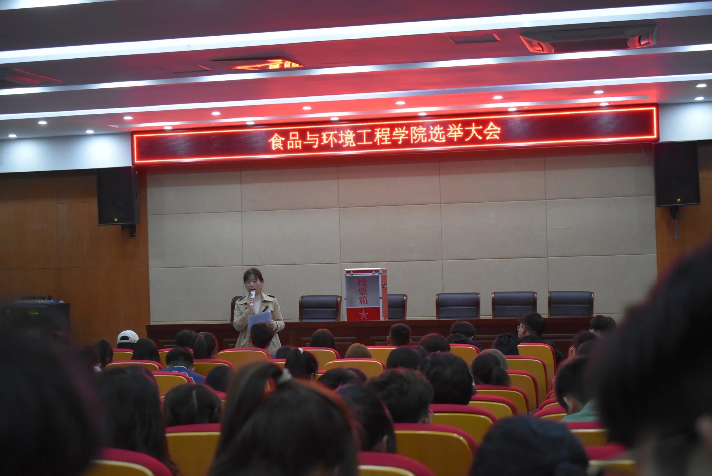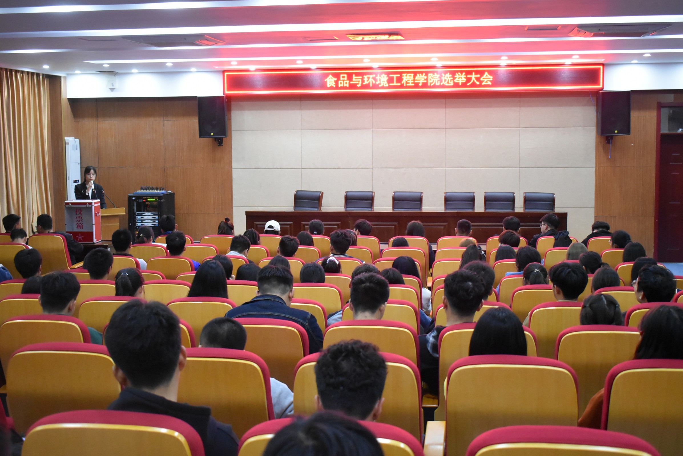 11月18日晚,食品与环境工程学院在南阶205召开新葡的京集团35222vip第二次学代会学生代表选举大会。新葡的京官网团总支指导老师李瑞瑞和100名各班学生代表及12名代表候选人参加了此次大会。大会由院学生会副主席纪雨馨主持。