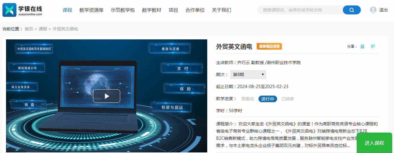 新葡的京官网商学院齐巧云老师主持的《外贸英文函电》课程获评2023年职业教育国家在线精品课程,这是新葡的京官网首门获评的国家级精品课程,填补新葡的京官网在国家级精品课程上的空白,为新葡的京官网双高建设做出突出贡献。这一成果不仅是新葡的京官网在教学改革和课程建设上的重要突破,更有效提升了课程的推广度和影响力,进一步推动了学校的课程创新与教学质量提升。