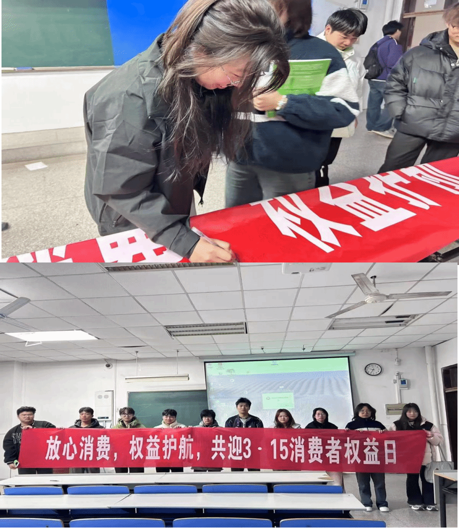 活动开始,在班级展板上详细介绍了消费者的基本权利、常见的消费陷阱以及维权途径等内容。以图文并茂的展示方式,来提高大家了解的兴趣,不少同学还拿出手机拍照留存,以便后续学习。同时,班级还举办了一场签字仪式,还重点介绍了消费者在权益受到侵害时应如何正确维权。