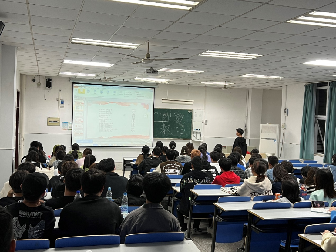 本次活动从团歌《光荣啊,共青团》的旋律中拉开序幕。活动开始,通过播放PPT与音频,带领同学们认识团歌、词曲作者与创作背景,让大家对团歌有了更加深刻的了解;接着,同学们跟着伴奏一起学唱,周治文同学耐心教唱每一句,不厌其烦的纠正错误,给予同学们极大的鼓励,在他的细心教导下,大家的歌声逐渐步入正轨;最后举行了“团歌比拼”活动,大家踊跃报名,充分调动了团员们的积极性。在整个过程中,大家精神饱满,声音洪亮,同学们都全心投入,唱出青年一代的积极向上的精神风貌。