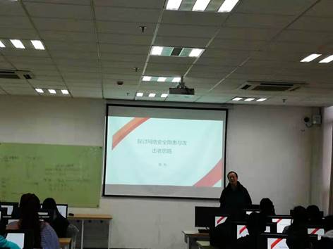 317日,校实验实训中心戴月老师在综合楼505教室,举办题为“探讨网络安全隐患与攻击者思路”的讲座,信息工程学院计算机类相关专业学生听取了讲座。