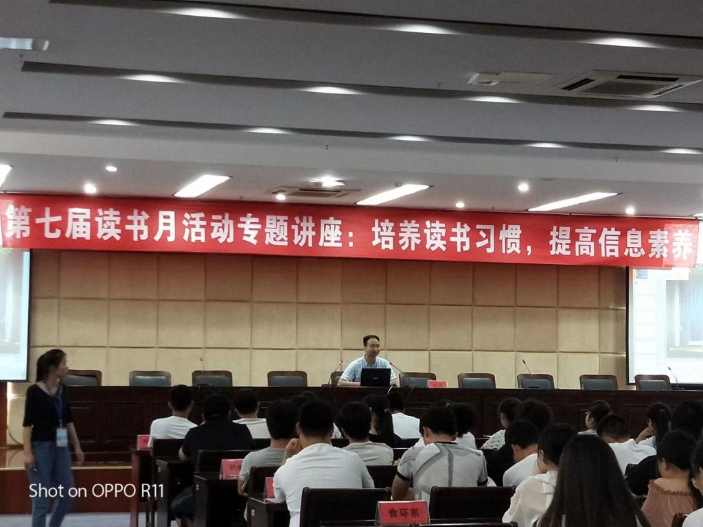 2018年5月15日19点,第七届读书月活动专题讲座:“培养读书习惯,提高信息素养”在综合楼五楼报告厅举行。主讲人是图书馆刘涛老师。参加此次讲座的有各系学生代表以及院学生会成员。