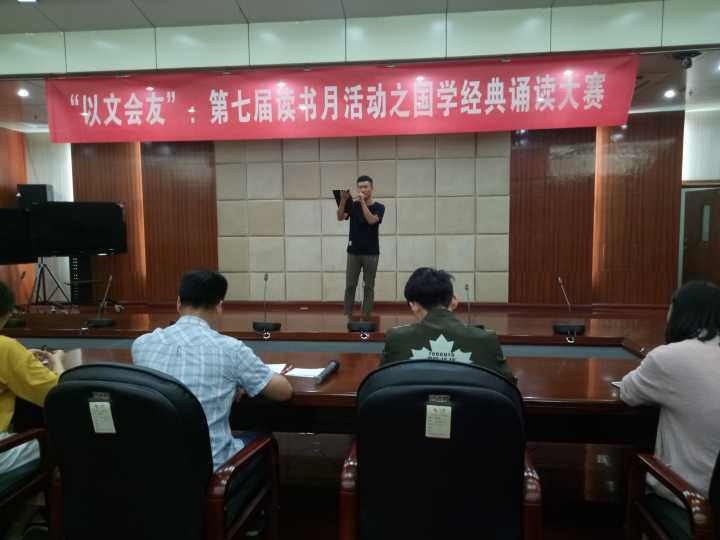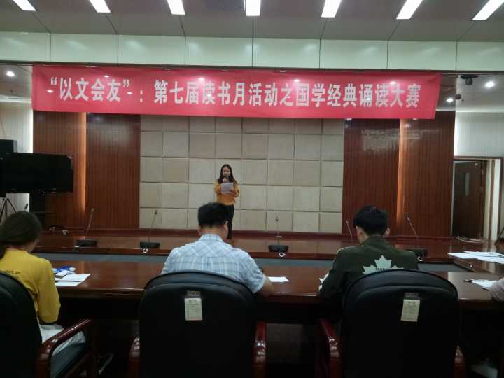 2018年5月20日,为传递文化圣火,共建书香校园,图书馆特此举行了第七届读书月活动之国学经典诵读大赛。