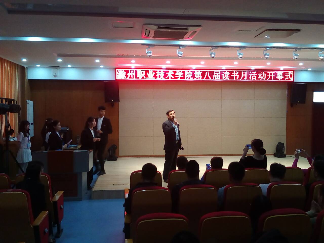 院领导吴大明、图书馆馆长苏和堂、副馆长盛丽蓉、图书馆老师李艳、闫燕、王亭力、刘涛及各系部代表、院学生会全体成员参加了本次开幕式。此次活动由院学生会学习部朱潇建和周丽两位同学主持。