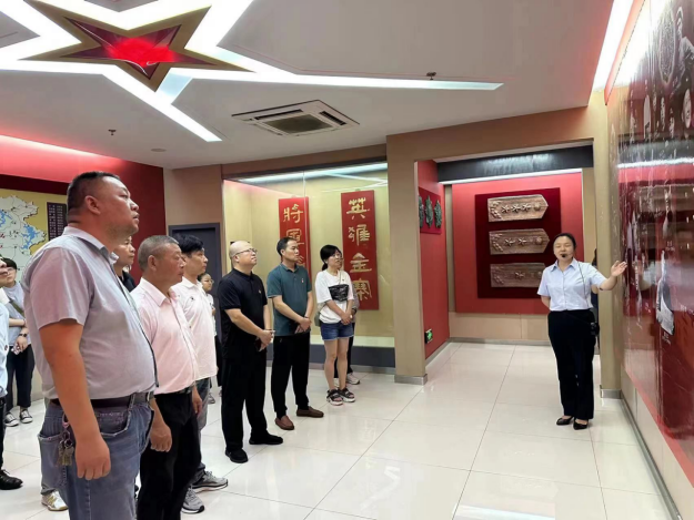 在金寨县红军纪念堂、金寨县革命博物馆,通过观看展览图片和馆内陈列的实物、聆听讲解员讲述英勇无畏的革命斗争故事,党员们感受着过去的峥嵘岁月里“一寸山河一寸血,一抔热土一抔魂”的热血豪情。