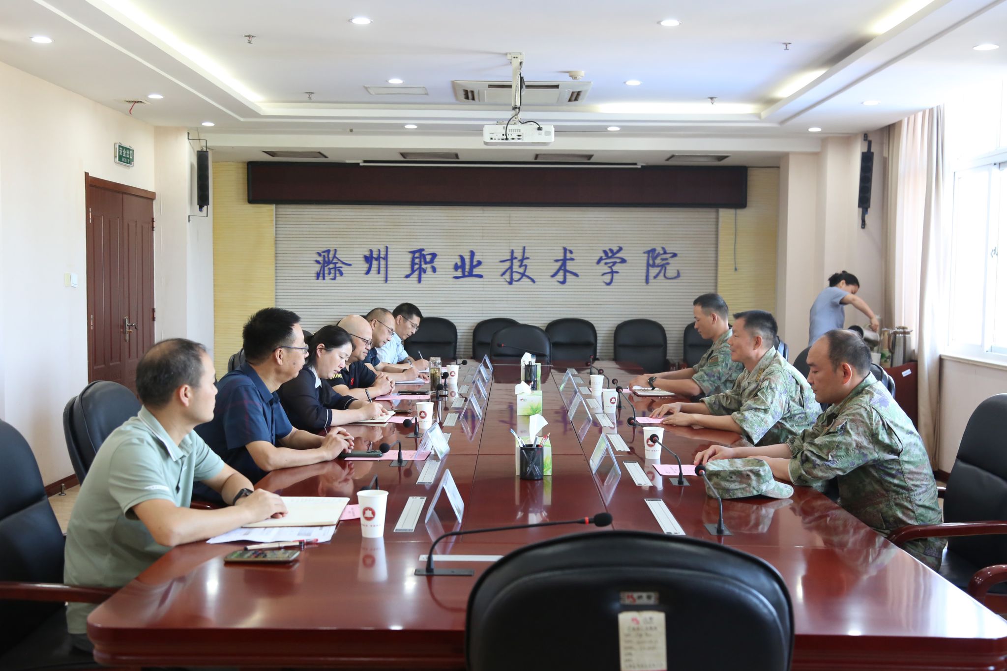 8月29日上午,驻滁某部队领导来校就学生军训等工作进行考察交流。校党委书记陈飏热情接待来访组一行,校党委委员、副校长胡凼,校党委委员、工会主席李平权,及学生工作处、后勤服务中心相关人员参加座谈交流。
