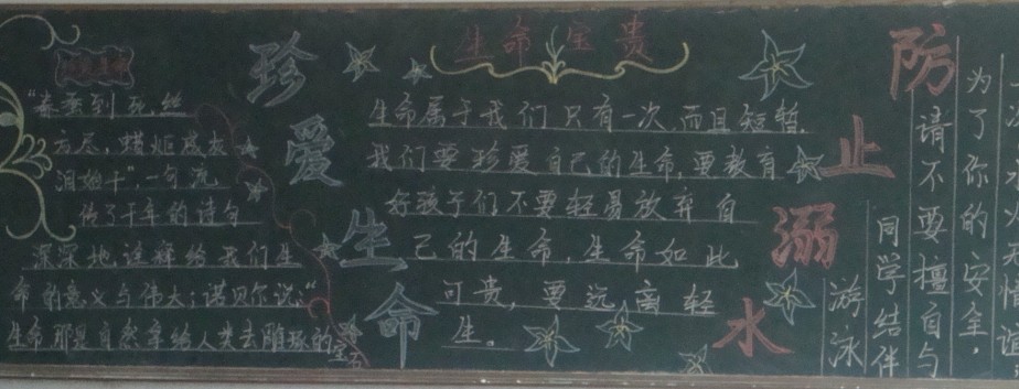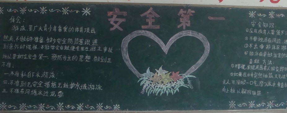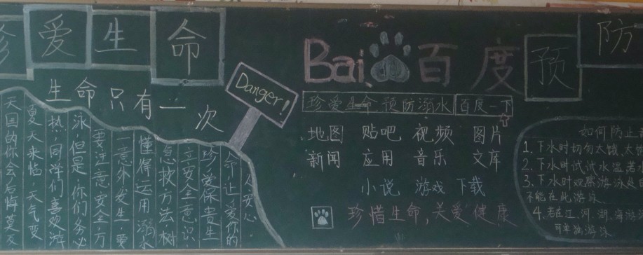 防溺水主题黑板报评比活动的开展,促使学生们在材料搜集、板报刊出、评比等多个环节中接受了“防溺水”安全教育,切实增强了学生们防溺水的意识,扩大了学生们防溺水的知识面,从而提高了学生们防溺水的能力和教育的有效性。