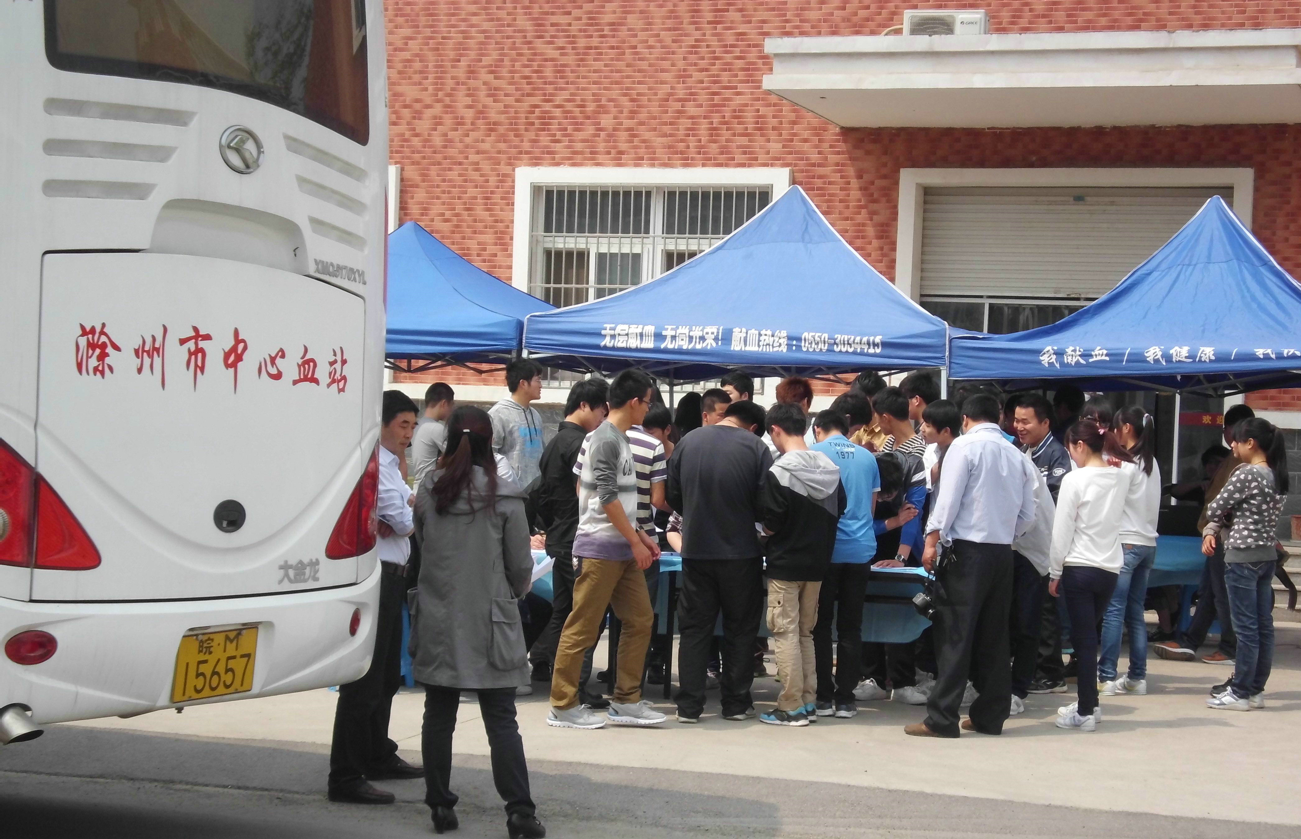 春日阳光明媚,和风惠畅。本着自愿、合要求的原则,下午1点左右,滁职学子满怀热情的来到学校老食堂门口,早早地等候在这里,在听取了专业医生介绍后,部分同学因某些原因本次未能如愿献血。同时,在了解相关注意事项后,符合献血条件的同学积极配合医生进行采血。春日骄阳映照在一个个无偿献血的同学身上,他们脸上洋溢着温暖幸福,他们是无偿奉献的爱心使者。下午四点左右,150名党课积极分子及其他部分闻讯赶来义务献血的同学成功献血,献血活动圆满结束。