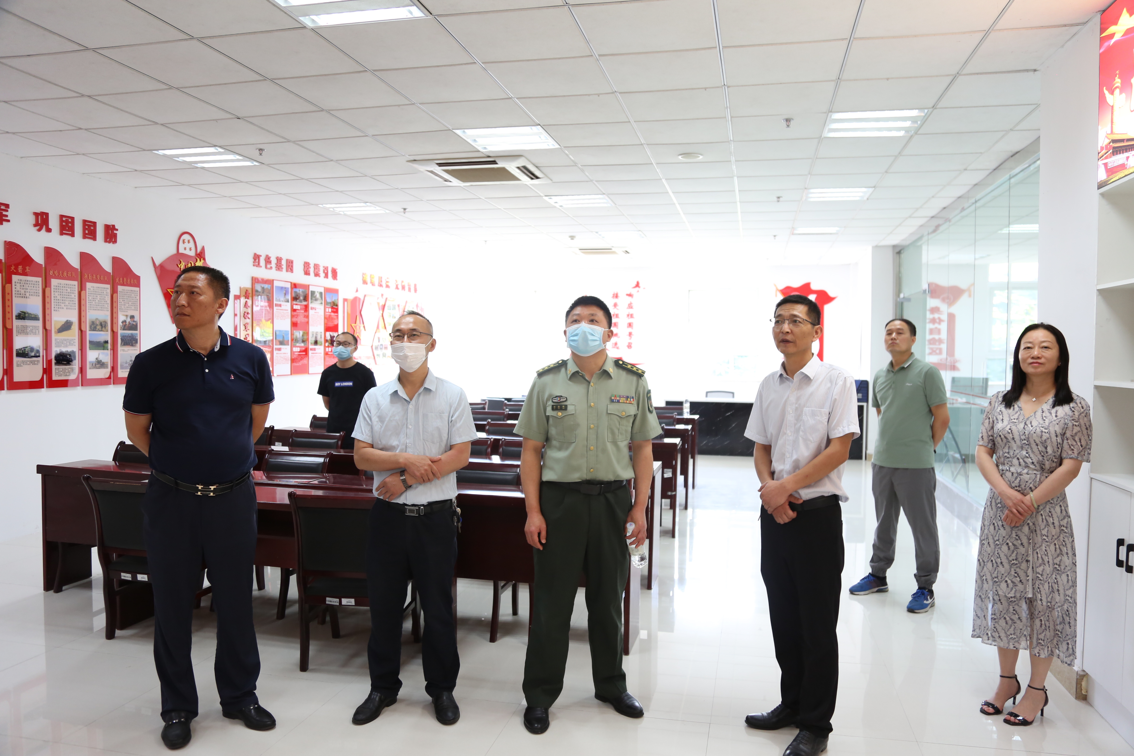 校征兵工作站工作人员在热情地引导来访组现场参观、讲解并赠送征兵工作画册之际,进一步汇报了“两站”日常运行情况、下一步优化完善计划、学校征兵工作的经验做法与工作成效等。