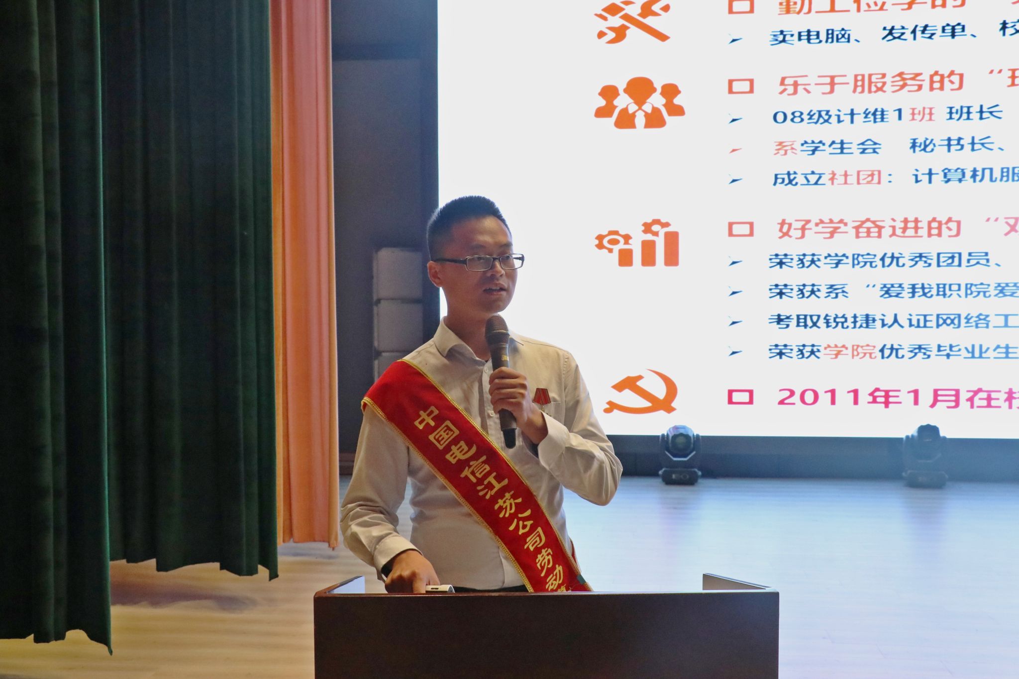 张友全,信息工程学院2011届计算机系统维护毕业生,现就职于中通服网盈科技有限公司南京分公司,荣获江苏电信首届劳动模范,省级工匠精神代言人等荣誉称号。张友全用朴实的语言、真挚的情感,介绍了他十几年如一日的奋斗历程,讲述了感人而充满正能量的故事,揭示了如何立足本职岗位、争做新时代的奋斗者、创造精彩人生的深刻道理,为同学们树立了鲜活的学习榜样。