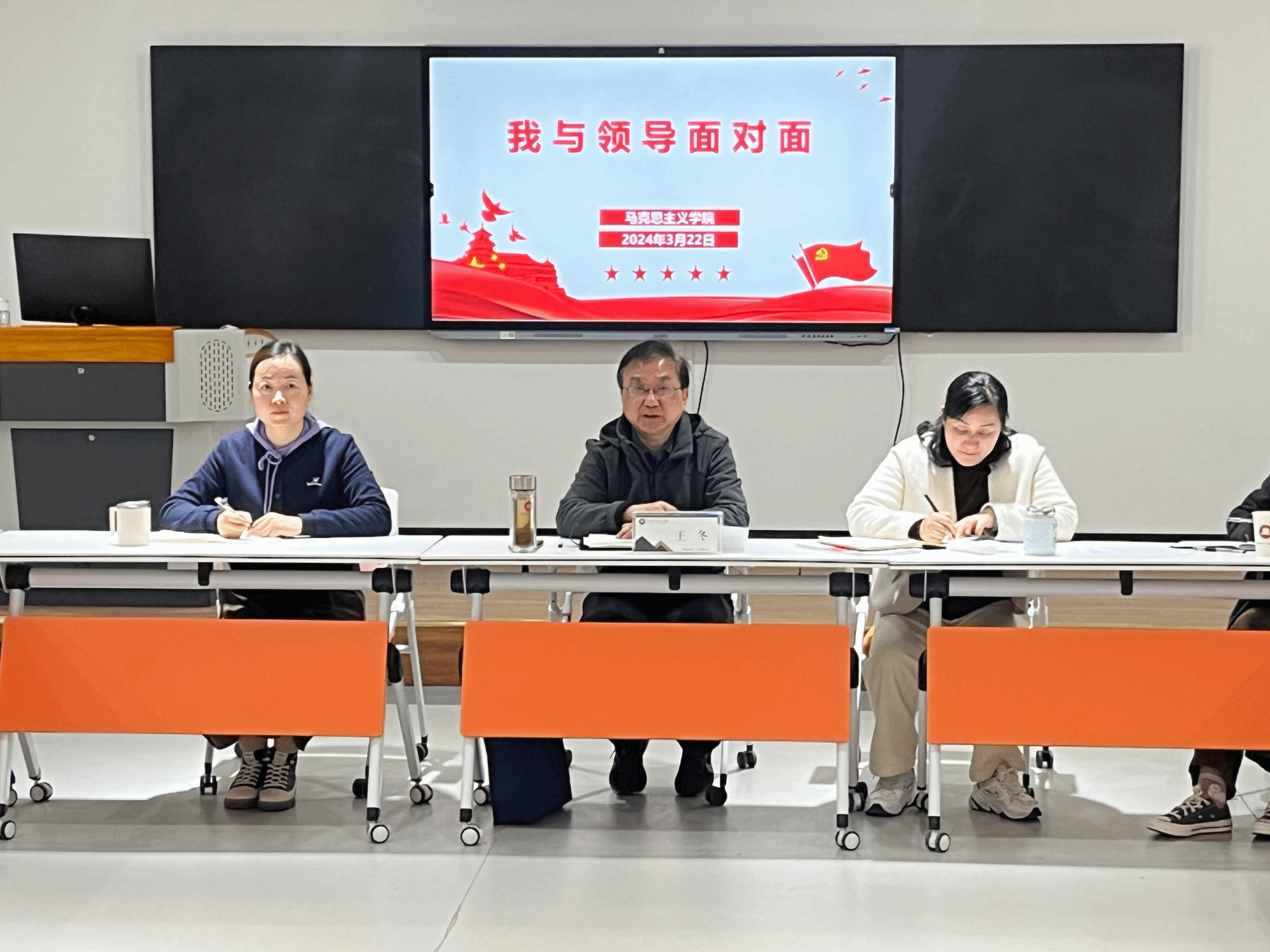 为深入倾听学生心声,回应学生关切诉求,不断提高学校管理水平和服务能力,3月22日,校党委委员、宣传统战部部长王冬走进校“大思政课”数字研学中心,开展“我与校领导面对面”座谈会。马克思主义学院副院长张家莉、党总支副书记陈琴、学生工作处郭薇老师以及各教学院部的思政委员等参会,会议由张家莉主持。