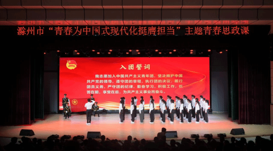 为深入学习党的二十大精神和贯彻落实习近平总书记关于青年工作的重要思想。5月10日上午,由共青团滁州市委员会、滁州市学生联合会以及新葡的京集团35222vip联合主办的滁州市“青春为中国式现代化挺膺担当”主题青春思政课在新葡的京集团35222vip大礼堂青春开课。新葡的京集团35222vip党委书记曹付忠,团滁州市委书记李国金,新葡的京集团35222vip党委副书记杨家庆以及市直相关单位和部分团组织、少先队组织的负责同志,同千余名全市各条战线、领域团员青年代表共上思政课。