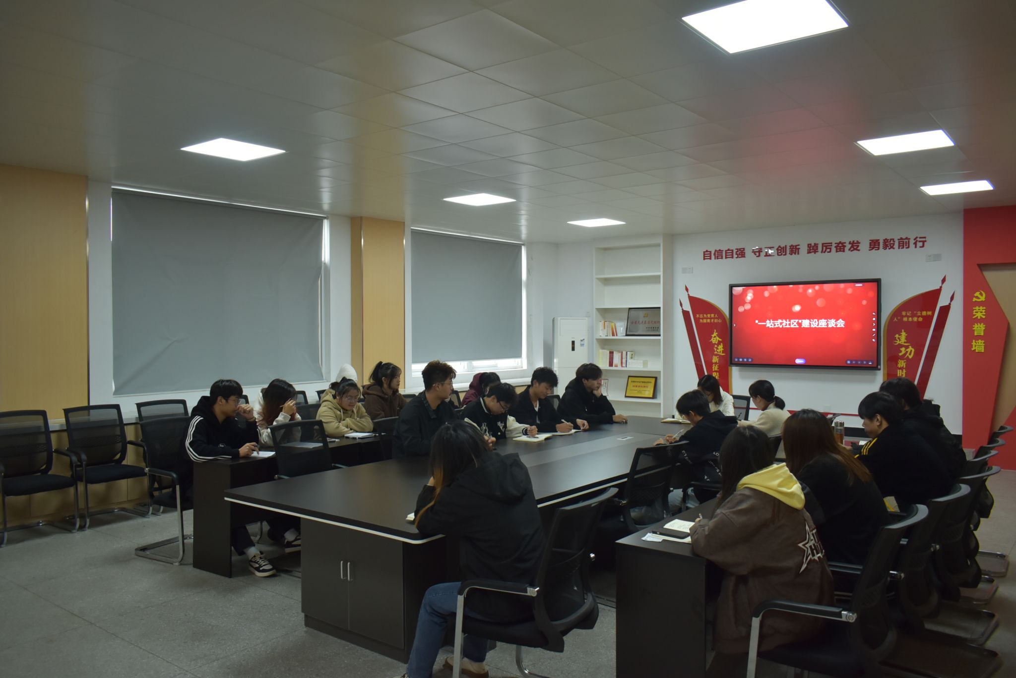 11月15日下午,学院党总支副书记张功会、党总支组织员兼学生管理党支部书记李瑞瑞组织召开学生座谈会,详细介绍新葡的京官网宿舍楼微社区“一站四坊”建设构想和功能设计。各班学生积极建言献策,结合校园生活、学习实际,围绕特色活动设计、运行管理等方面提出了很多有价值的意见建议。