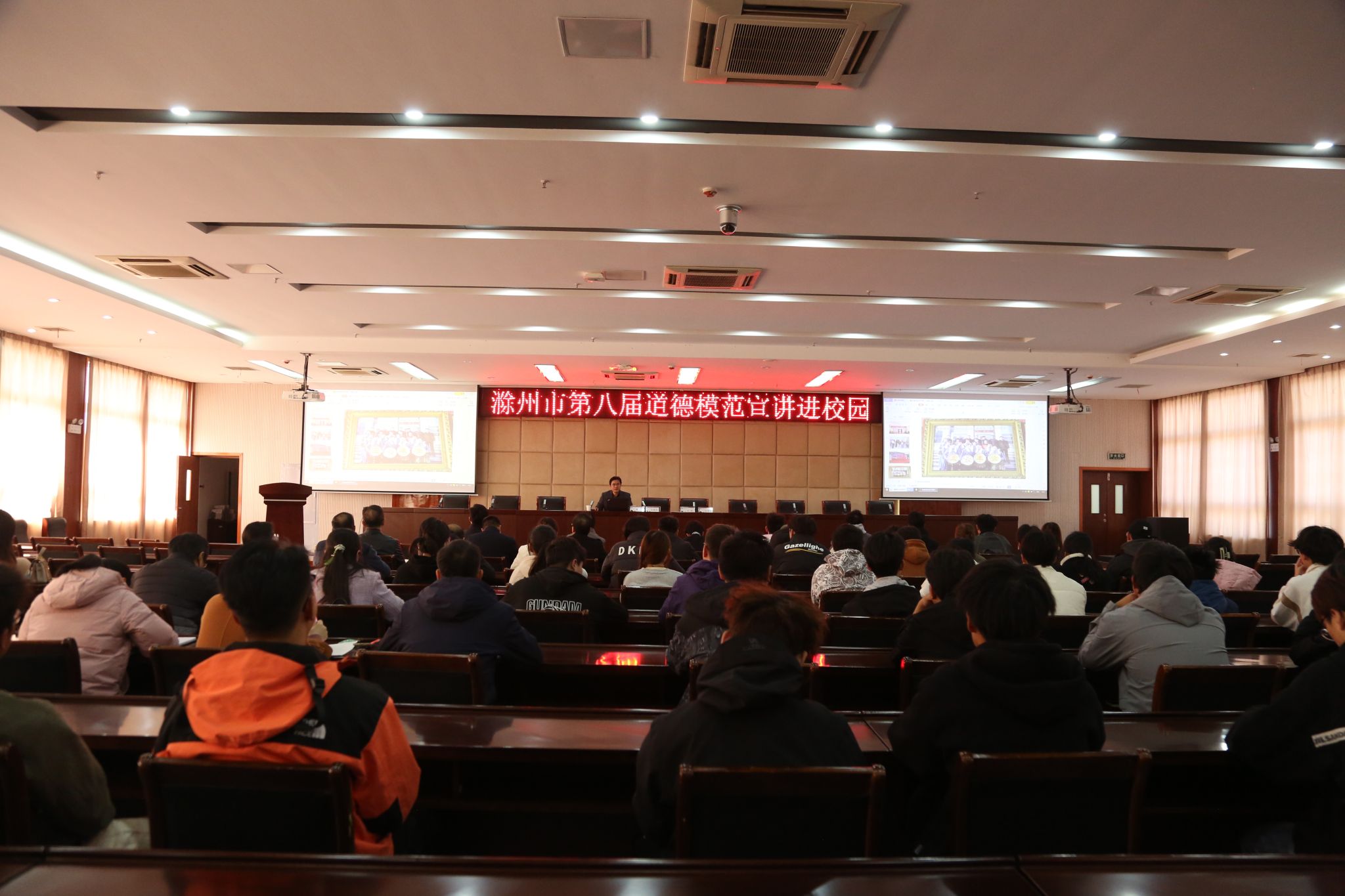 为加强思想道德建设,充分发挥“身边好人”在学校精神文明建设中的示范引领作用,新葡的京官网举办道德模范宣讲进校园系列活动。本次邀请到滁州市第八届爱岗敬业道德模范邓凡江来校宣讲。宣讲会由校党委委员、宣传统战部部长王冬主持。师生代表共计200人参加。