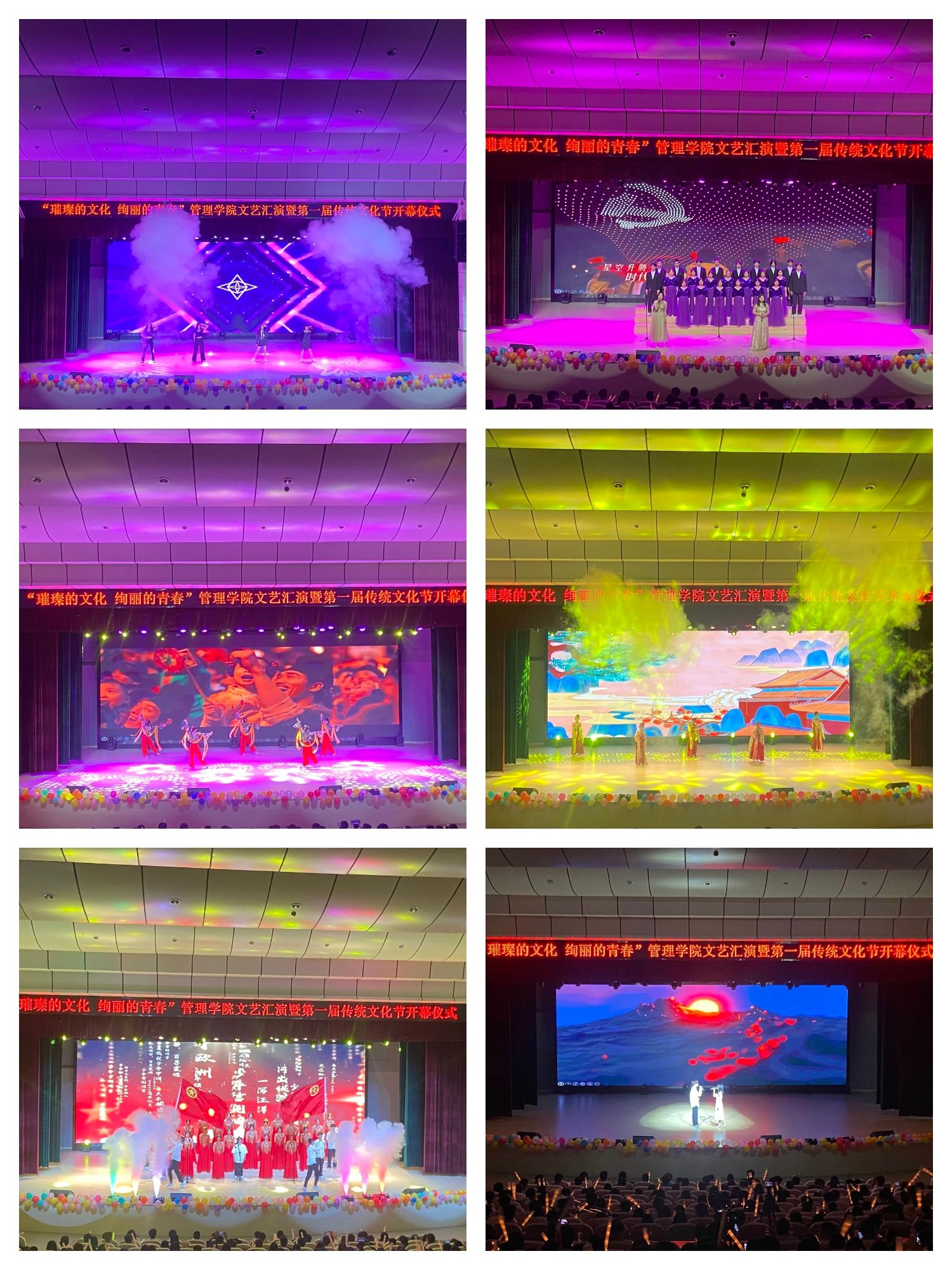 5月25日下午,管理学院举办“璀璨的文化,绚丽的青春”文艺汇演暨第一届传统文化节开幕仪式。校党委委员、副校长胡凼、管理学院院长、党总支副书记翁嘉晨、管理学院党总支书记耿学刚、管理学院党总支副书记、交通运输学院党组织负责人朱亚春、交通运输学院院长吴文斌、管理学院党总支副书记何文婧、教学秘书徐姗及管理学院、交通运输学院教师代表与全体同学一起观看了演出。
