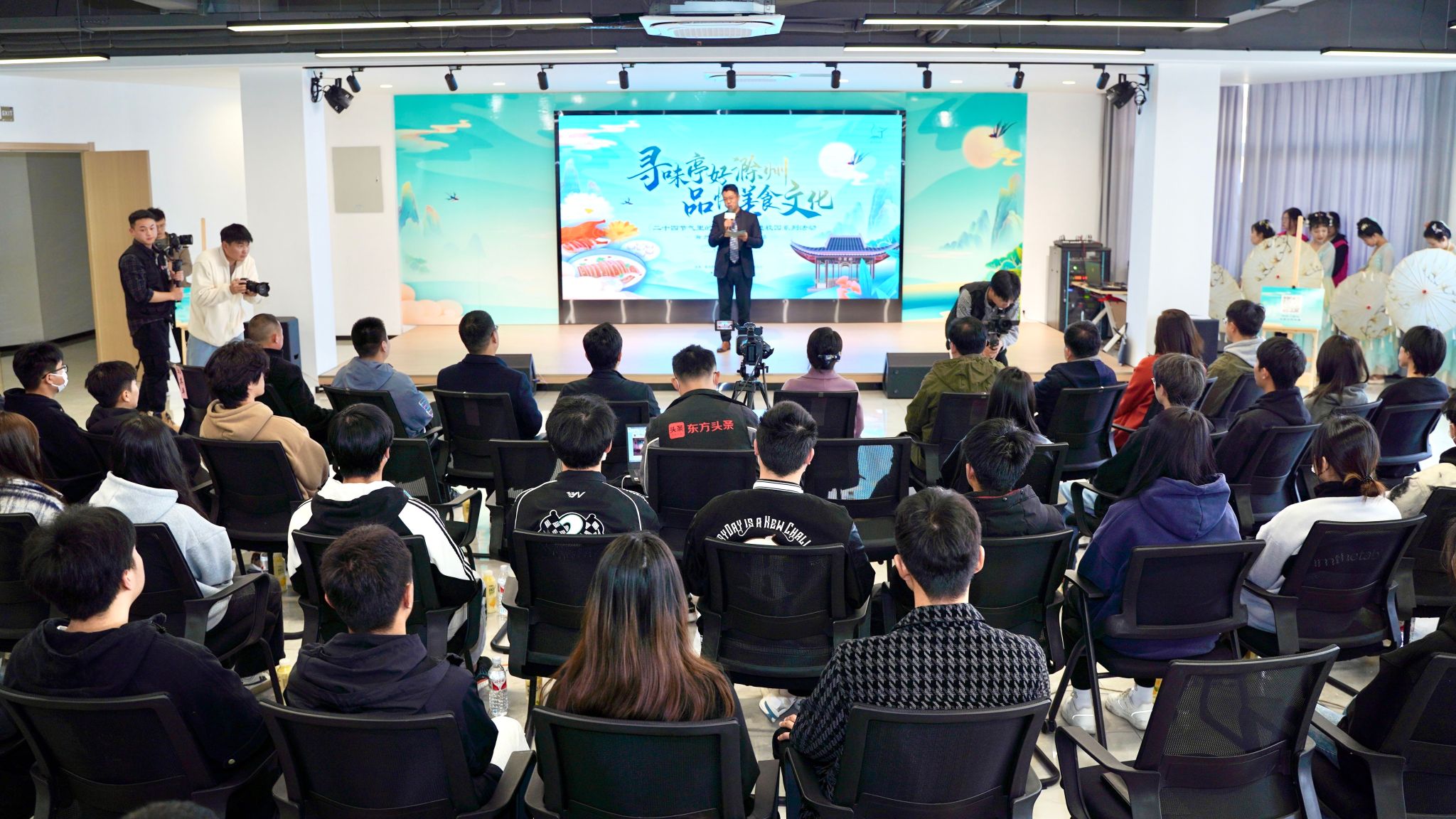 活动现场节目精彩纷呈,互动环节丰富有趣。舞蹈表演《采芳》,配乐诗朗诵《惊蛰》展现惊蛰节气滁州深厚的文化底蕴。专家漫谈沙龙围绕“老手艺释放新动能 | 从经典传统美食看优秀传统文化”这一主题展开对话。嘉宾们共同向大家讲述了传统美食背后的故事,分享了创作的思路和技巧,让在场的学生们受益匪浅。活动现场还准备了池河雪片糕、琅琊酥糖、秦栏卤鹅等12道经典滁州美食,供大家品尝,现场参与者们大快朵颐,纷纷为滁州味道点赞。