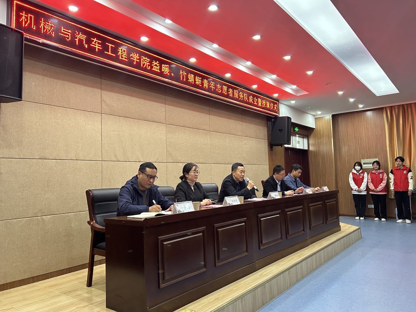 会议伊始,机械与汽车工程学院党总支书记朱婷婷宣读《关于成立机械与汽车工程学院益暖、竹蜻蜓青年志愿者服务队的通知》,代表校团委要求各位青年志愿者遵守青年志愿者协会有关章程,弘扬志愿服务精神,为建设文明和谐美丽的滁州做出积极贡献。