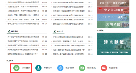 方式一:师生校外访问新葡的京集团35222vip官网,点击页面左下角的“VPN登录”,使用工号和密码登录即可,可在校外访问相关业务系统(如,财务报销、诊改平台、中国知网等),实现远程办公。
