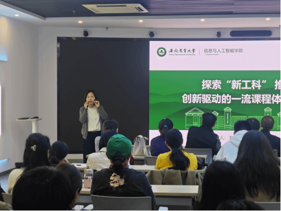 进一步优化人才培养体系,提升人才培养质量,11月1日,信息工程学院在综合楼虚拟现实展厅举办“一流课程建设”专题讲座。本次讲座诚邀安徽农业大学硕士生导师王永梅副教授主讲,面向信息工程学院所有专兼职教师,共计50余名教职工到场聆听。