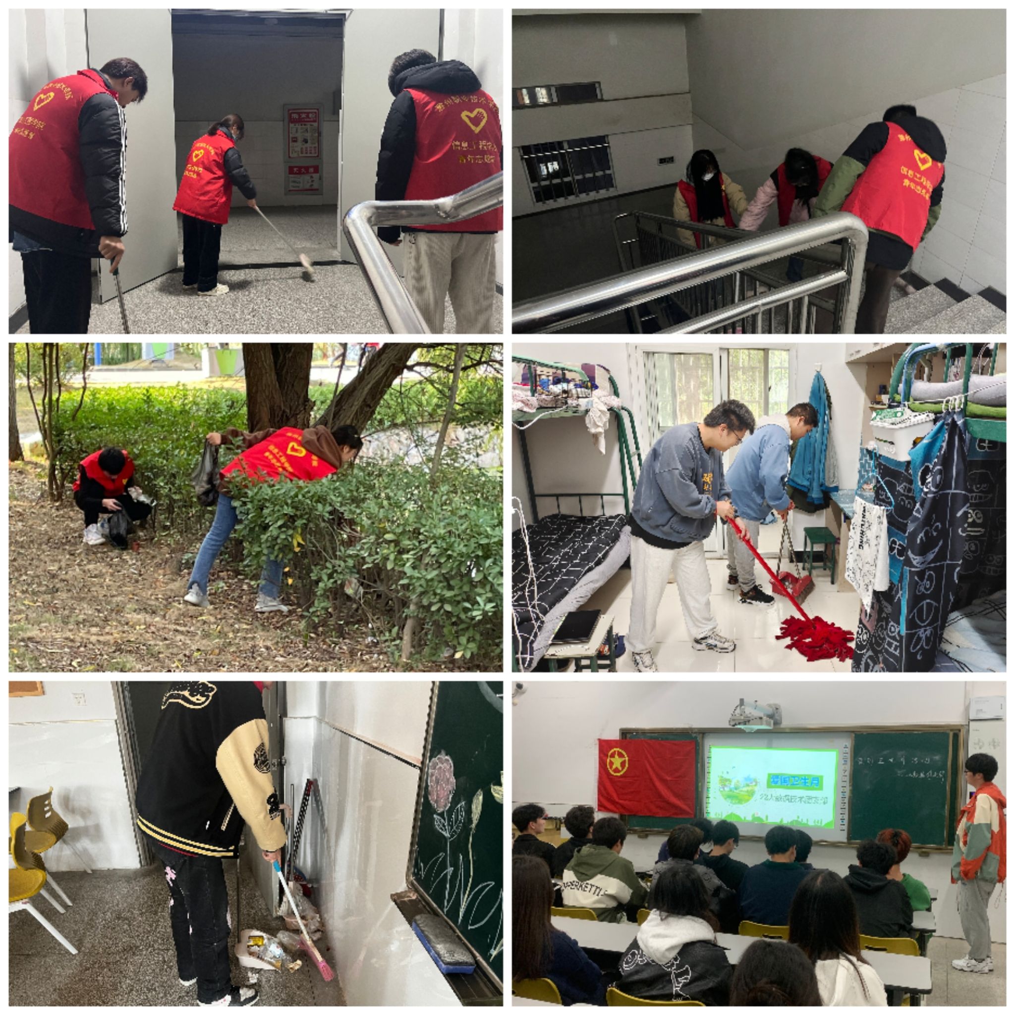 下一步,信息工程学院团总支坚持服务师生卫生健康,持续发扬爱国卫生运动的精神,倡导师生养成良好卫生习惯、践行健康生活方式、提升健康素养、美化校园卫生环境,为推动绿色、健康、美丽、和谐校园建设奉献力量。