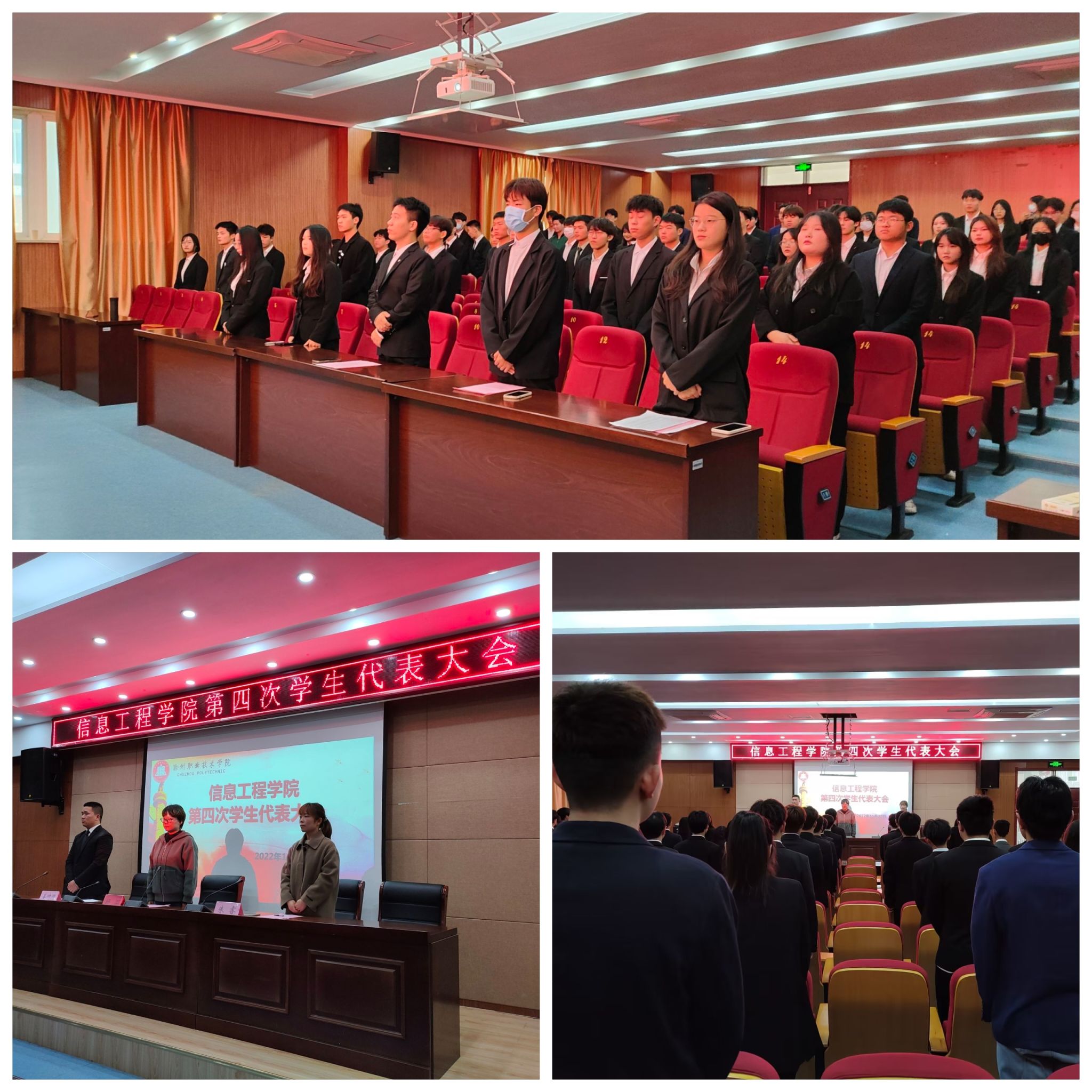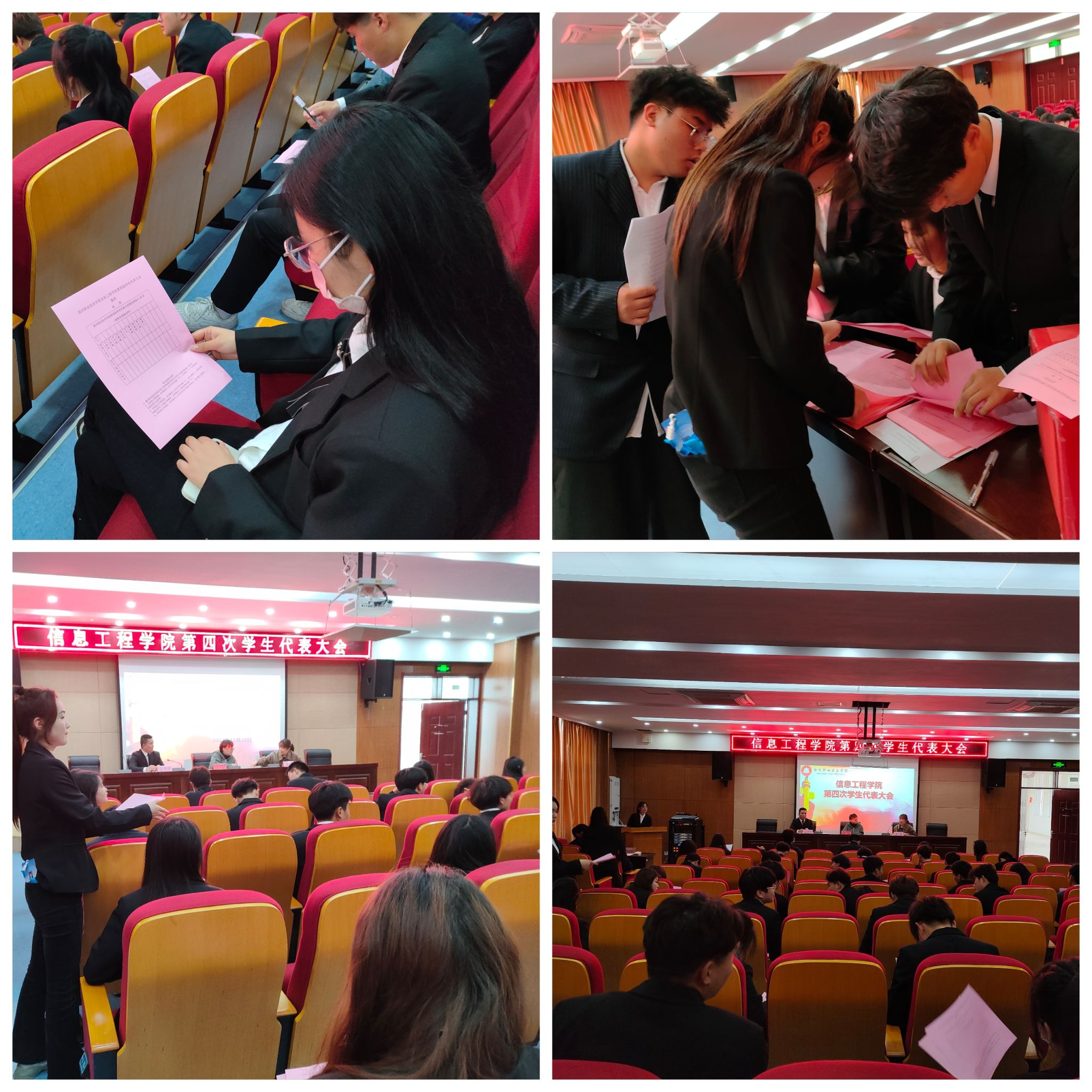 12月1日下午,新葡的京官网在南阶205召开新葡的京集团35222vip信息工程学院第四次学生代表大会,院党总支副书记杨阳、院团支总书记朱睿以及学院各年级73名学生代表到会,张乐乐主持本次会议。