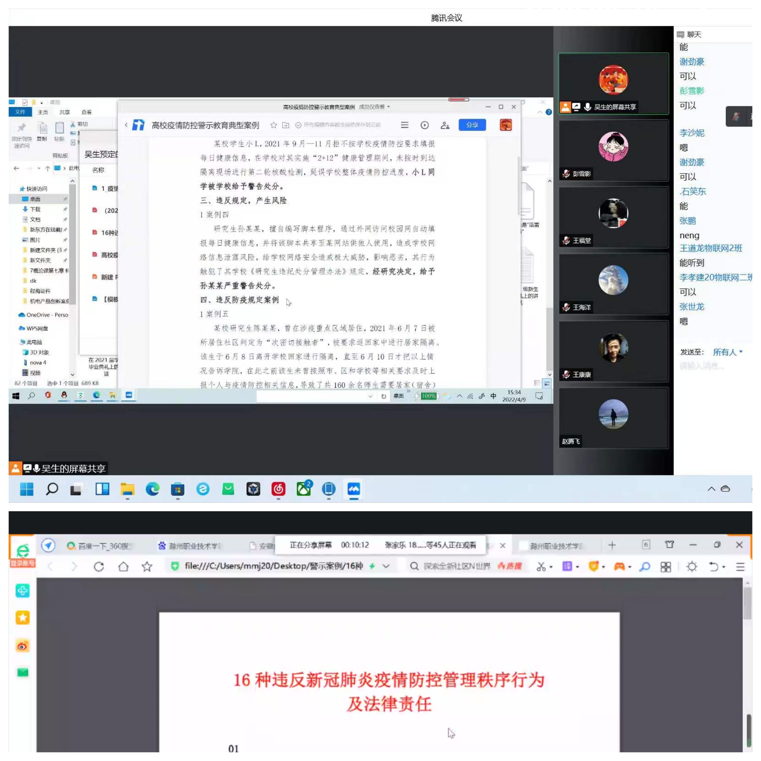 为进一步加强校园疫情防控常态化工作,贯彻落实学校关于疫情防控工作的最新精神和要求,严明纪律,强化警示教育。4月8日至9日,信息工程学院各班级组织开展了学生疫情教育主题班会,会议由各班级辅导员主持。