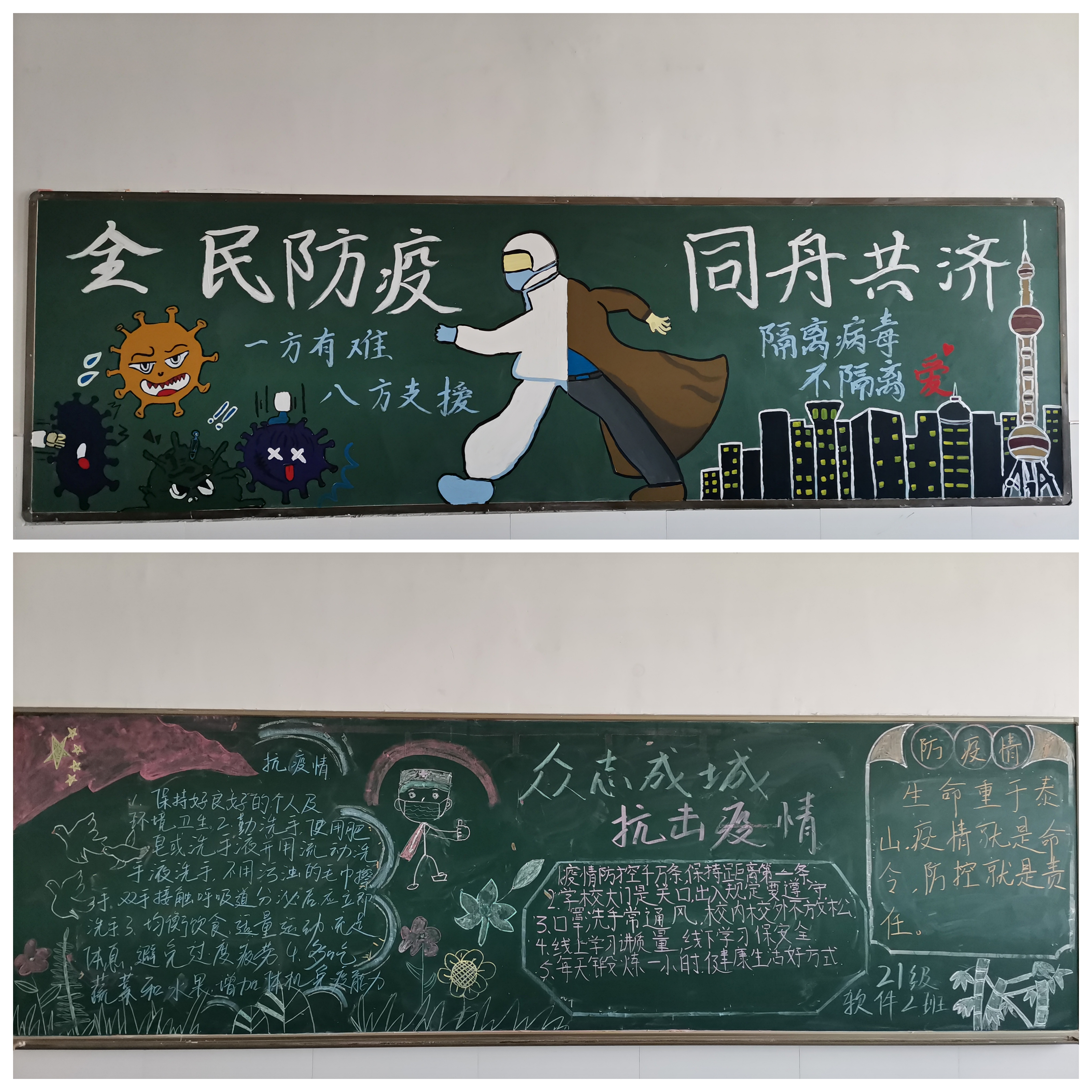 通过自编自绘,同学们从不同角度介绍了新冠肺炎疫情的防控知识以及个人感受,他们用手抄报和黑板报的形式表达对抗疫一线工作人员的感激和敬佩之情。展现了自己对抗击疫情的决心,并将学校日常推广的防疫卫生健康知识展现在一幅幅形式多样、内容丰富的作品之上。同时,本次活动也充分展示了新葡的京官网疫情防控宣传活动成效,传递了同心同力共抗‘疫’的坚定信心。