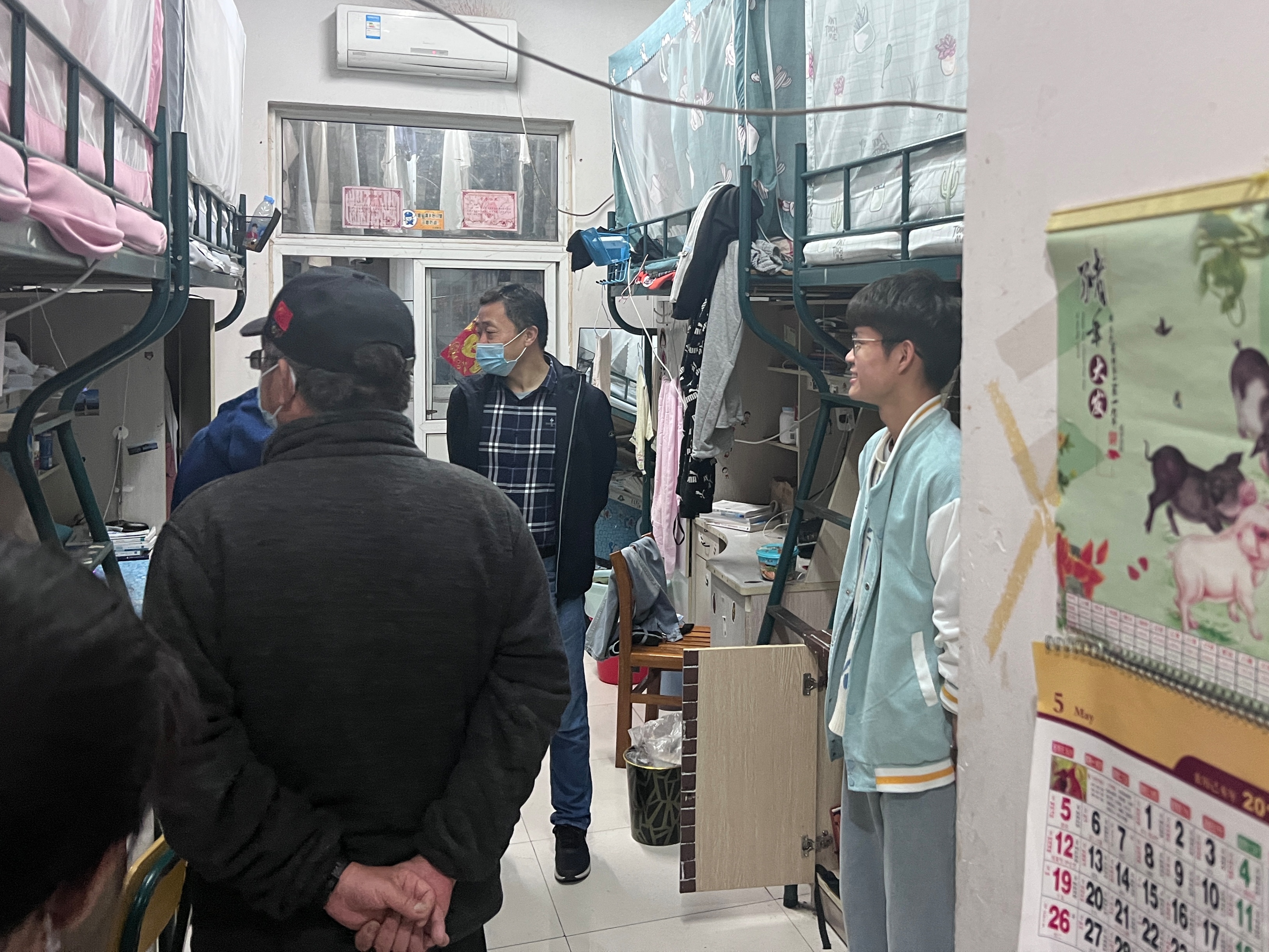 为进一步落实学校的疫情防控政策,切实了解学生生活、学习需求,关心学生思想状态,确保学生在封闭管理期间的生活、学习有序进行,4月4日晚,校党委副书记杨家庆、安全保卫处处长贺建邺、信息工程学院党总支书记程洪斌、信息工程学院专职辅导员一行走访了5号学生宿舍楼。