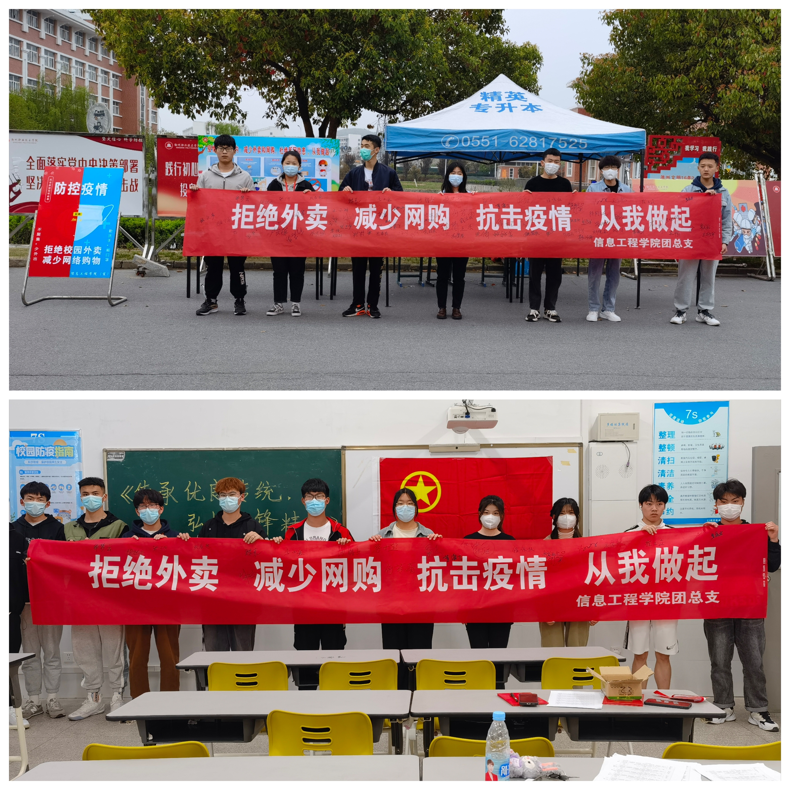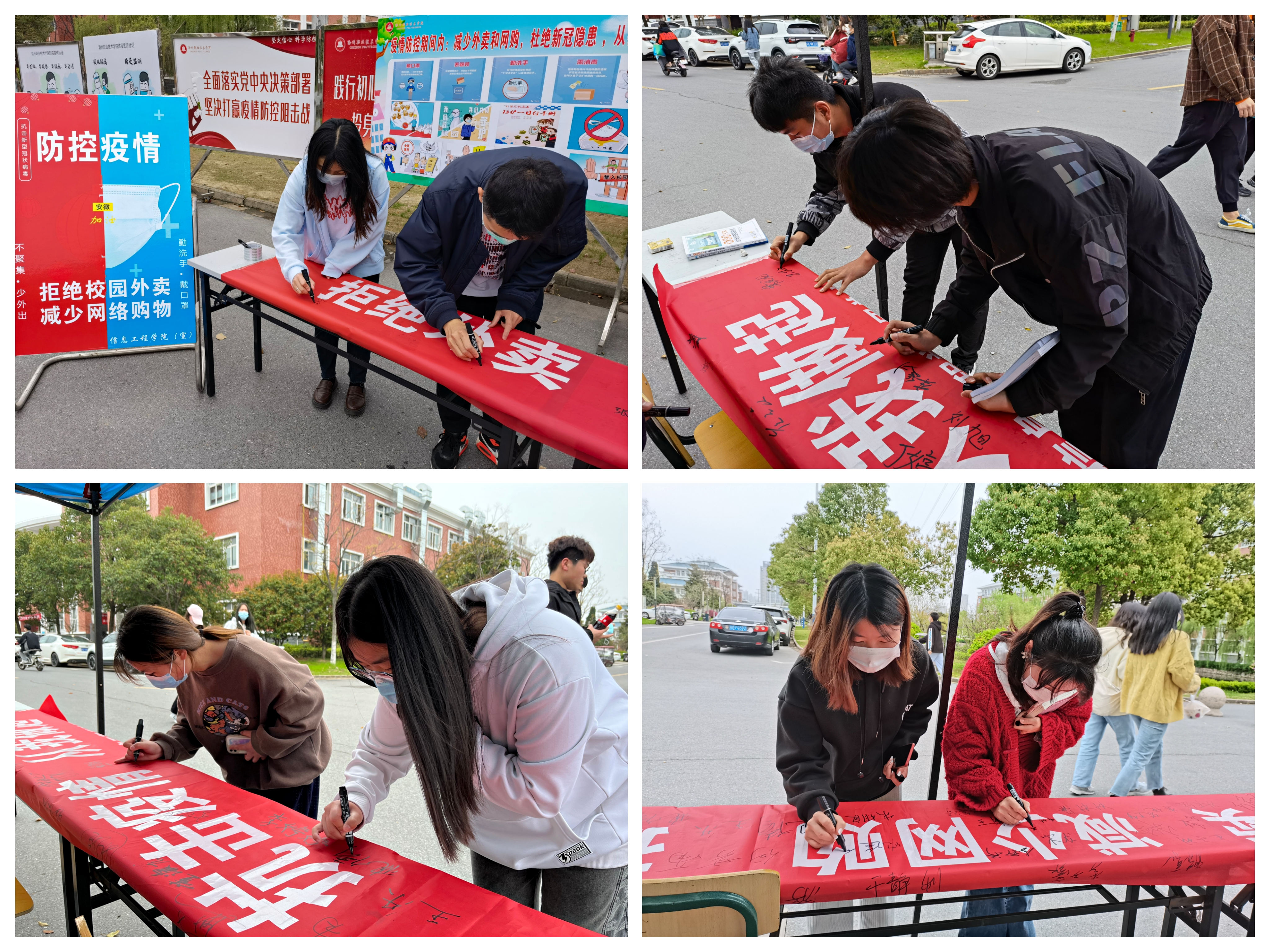 当前正处于疫情防控的关键时期,有效阻断疫情传播途径,切实加强同学们的防疫意识。3月30日至31日,信息工程学院团总支组织共青团工作者分别在食堂、超市和班级开展了“拒绝外卖,减少网购”主题签名活动,引导同学们拒绝外卖,健康饮食,减少网购。