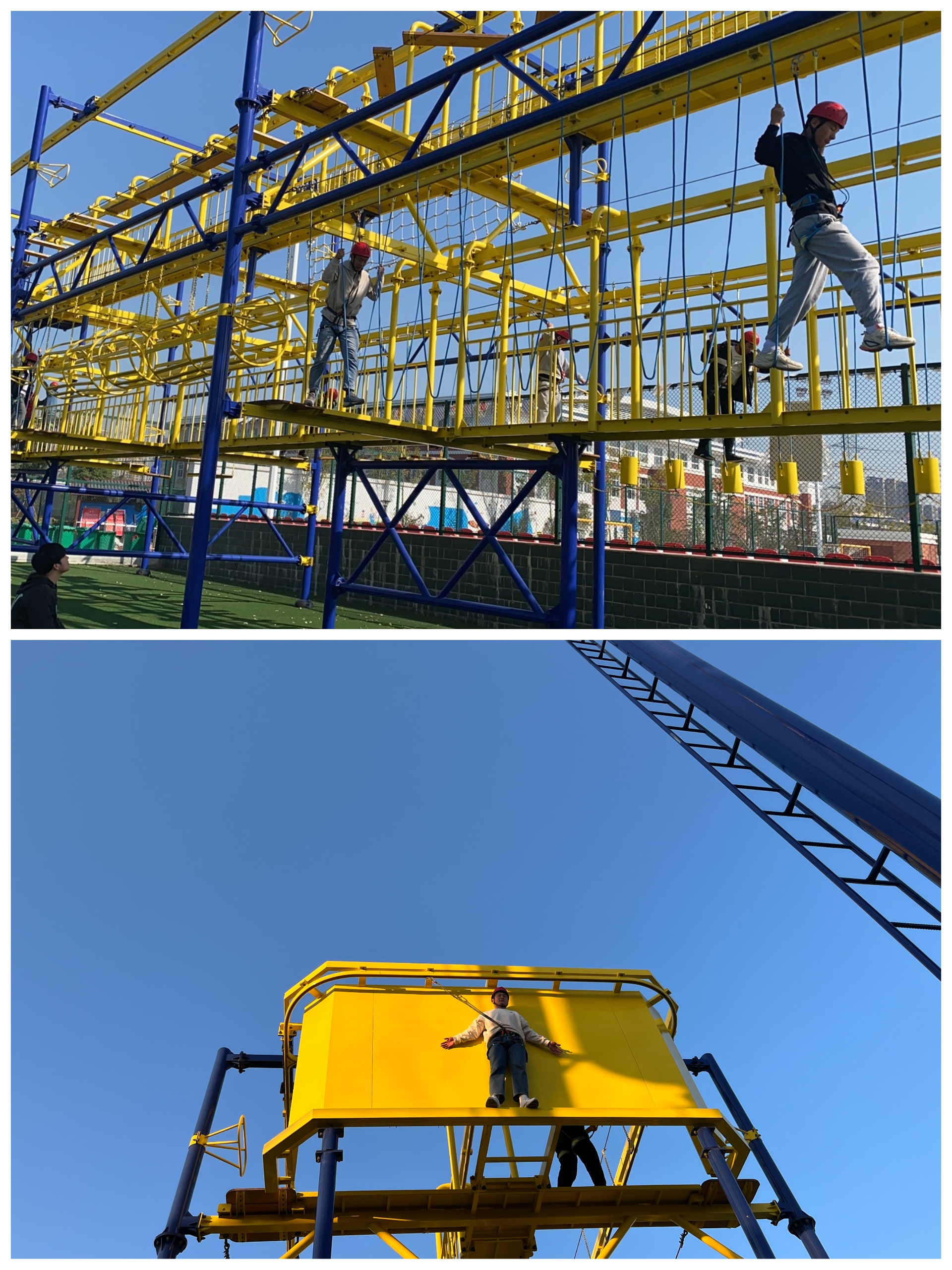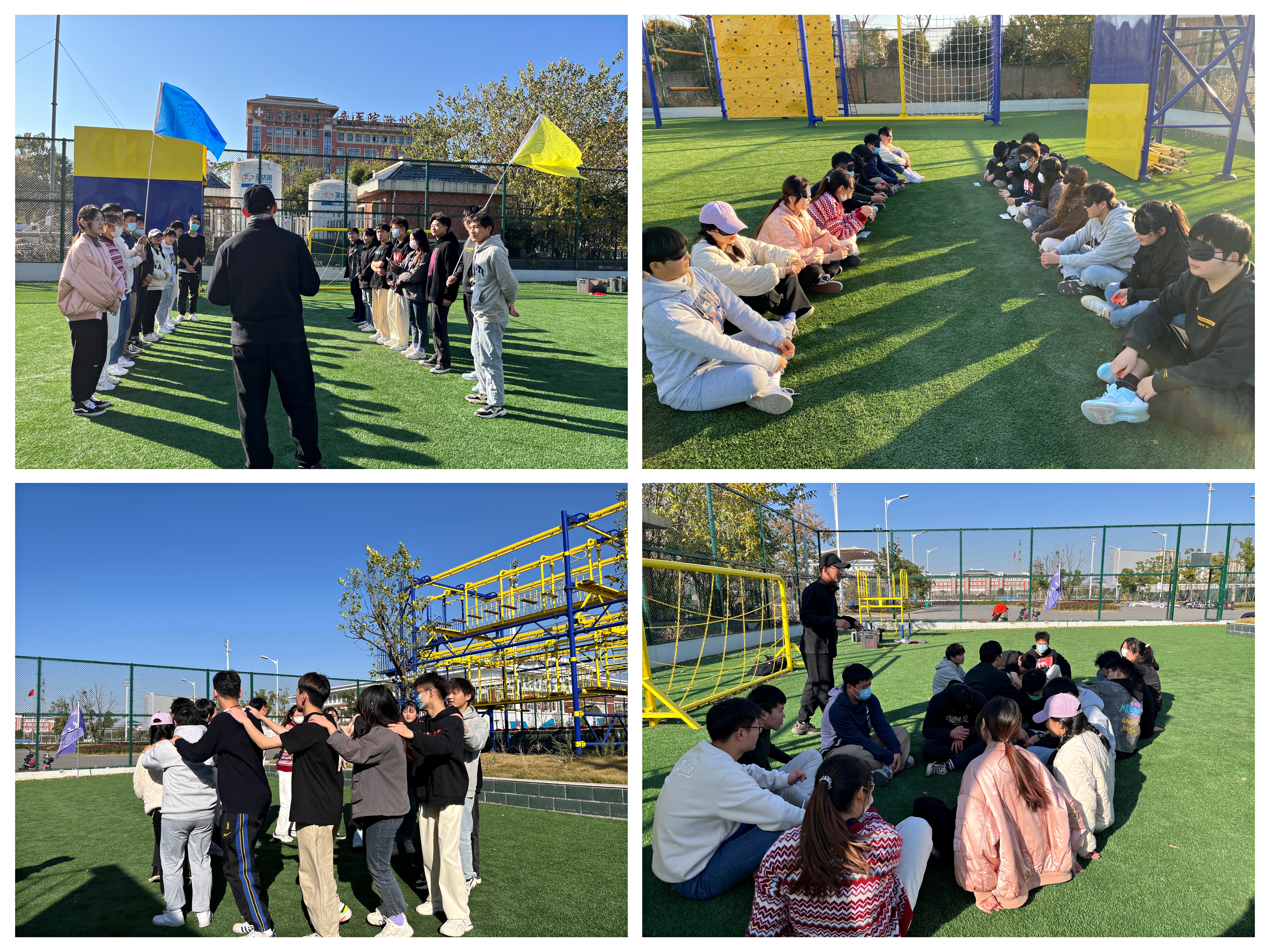 活动伊始,体育部负责老师介绍了本次培训的目的意义和具体流程规则,希望同学们能积极参与、认真观察、勤于思考、用心感悟。接着,三位老师带领同学们进行了素质拓展培训活动。本次活动包括“破冰游戏——罗杰斯交朋友”、“团队智慧——解手链”、“团队合作——同舟共济”、“团队分享——朋友请听好”四个游戏及“突破极限,挑战自我”高空探险项目。同学们在游戏中相互配合,相互鼓励,积极互动,破解难题,同时认真分享个人体验,加深了彼此之间的关系,增强了团体合作默契,提高了对团体素拓的认识和了解。而高空探险项目更是让同学们突破了自己的极限,有的甚至了克服了恐高症,真正做到了“突破极限,挑战自我”的精神。