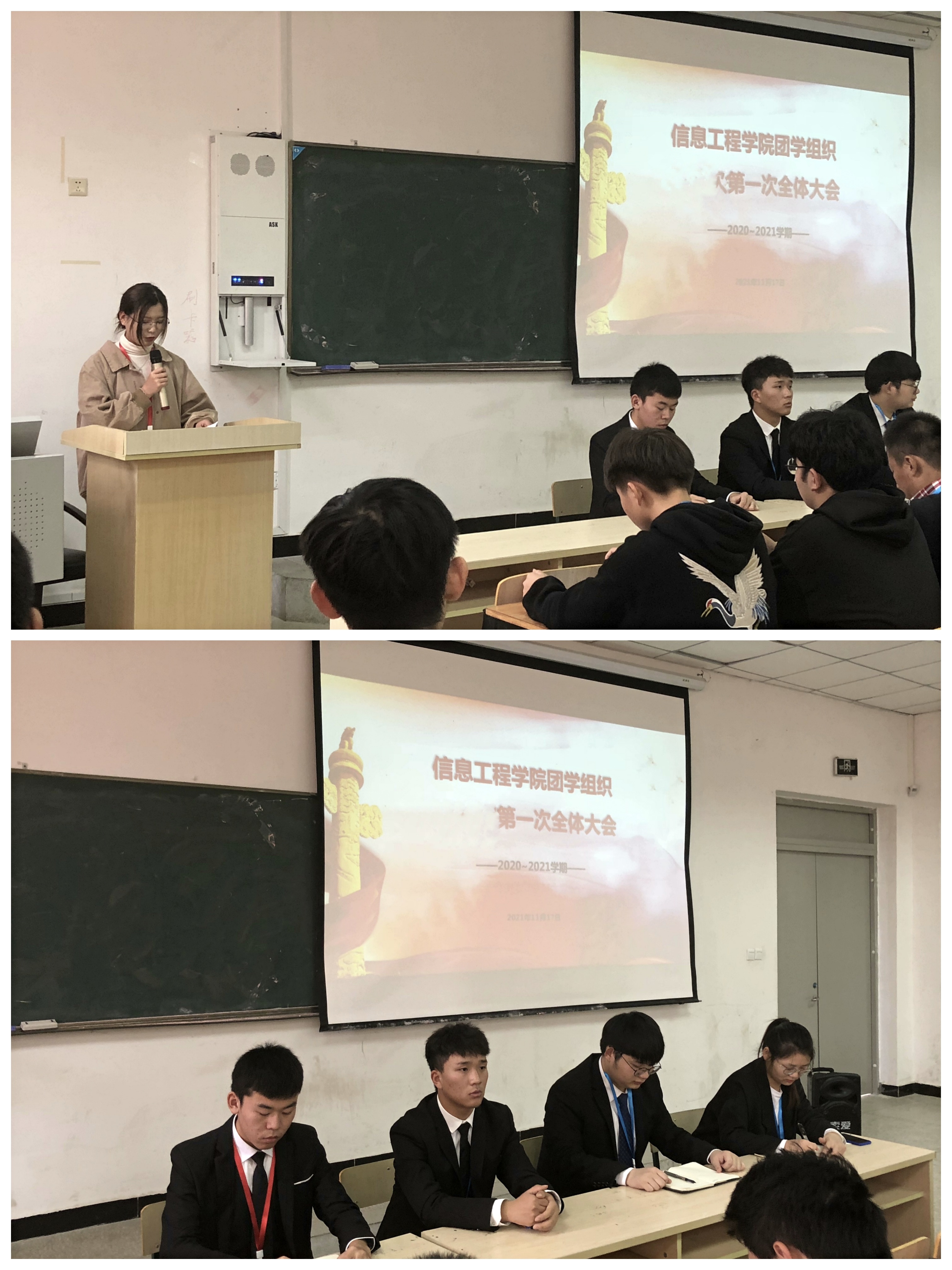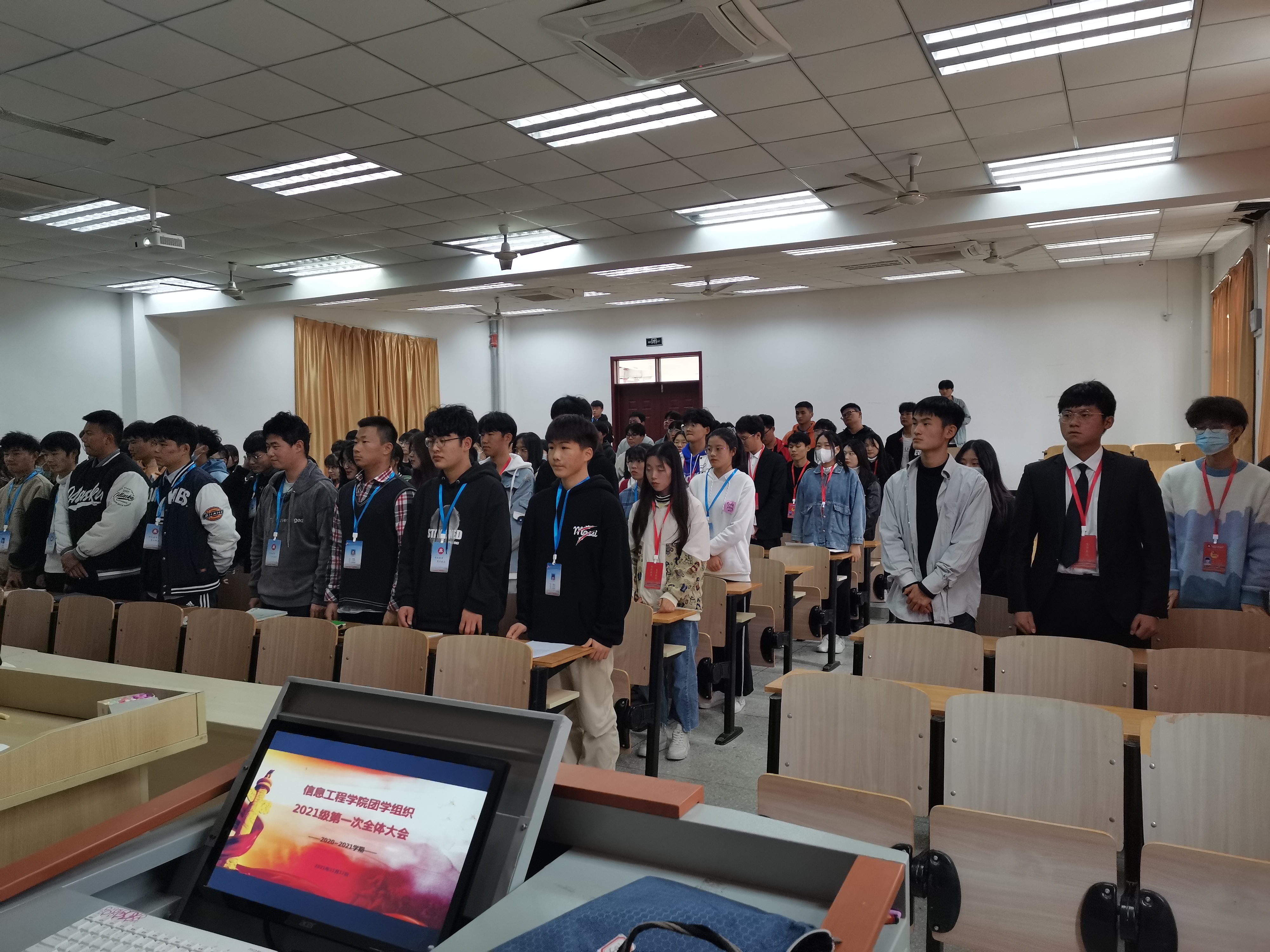 为保证新葡的京官网本学期团学组织各项工作的稳步推进。11月17日,信息工程学院团学组织在南阶103召开了2021-2022学年第一学期全体大会。信息工程学院团总支副书记、学生会主席团以及团学组织的全体共青团工作者出席本次大会。