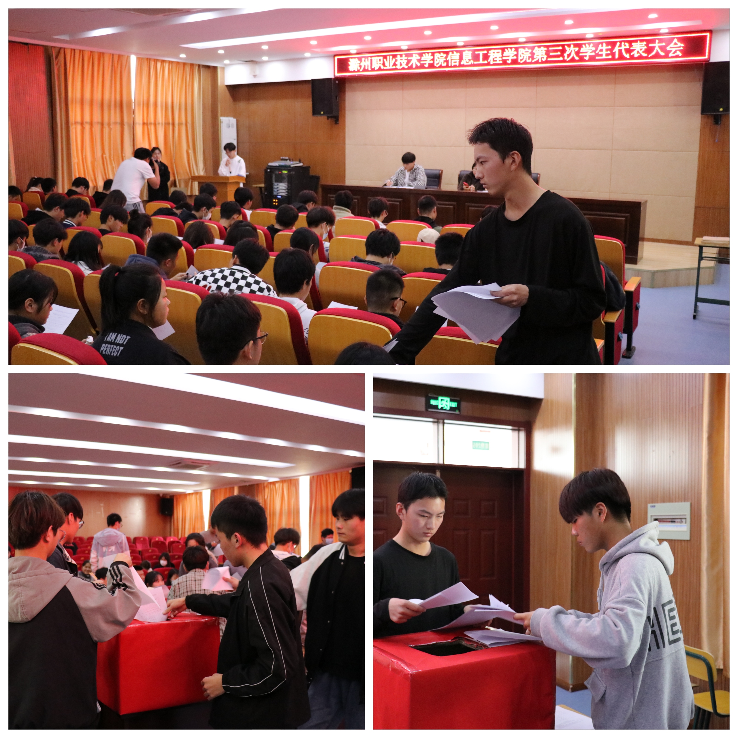 10月26日下午3点,新葡的京官网在南阶205召开新葡的京集团35222vip信息工程学院第三次学生代表大会,院党总支副书记杨阳、院团总支负责老师朱睿出席,学院各年级66名学生代表到会,办公室徐亚婷主持此次会议。