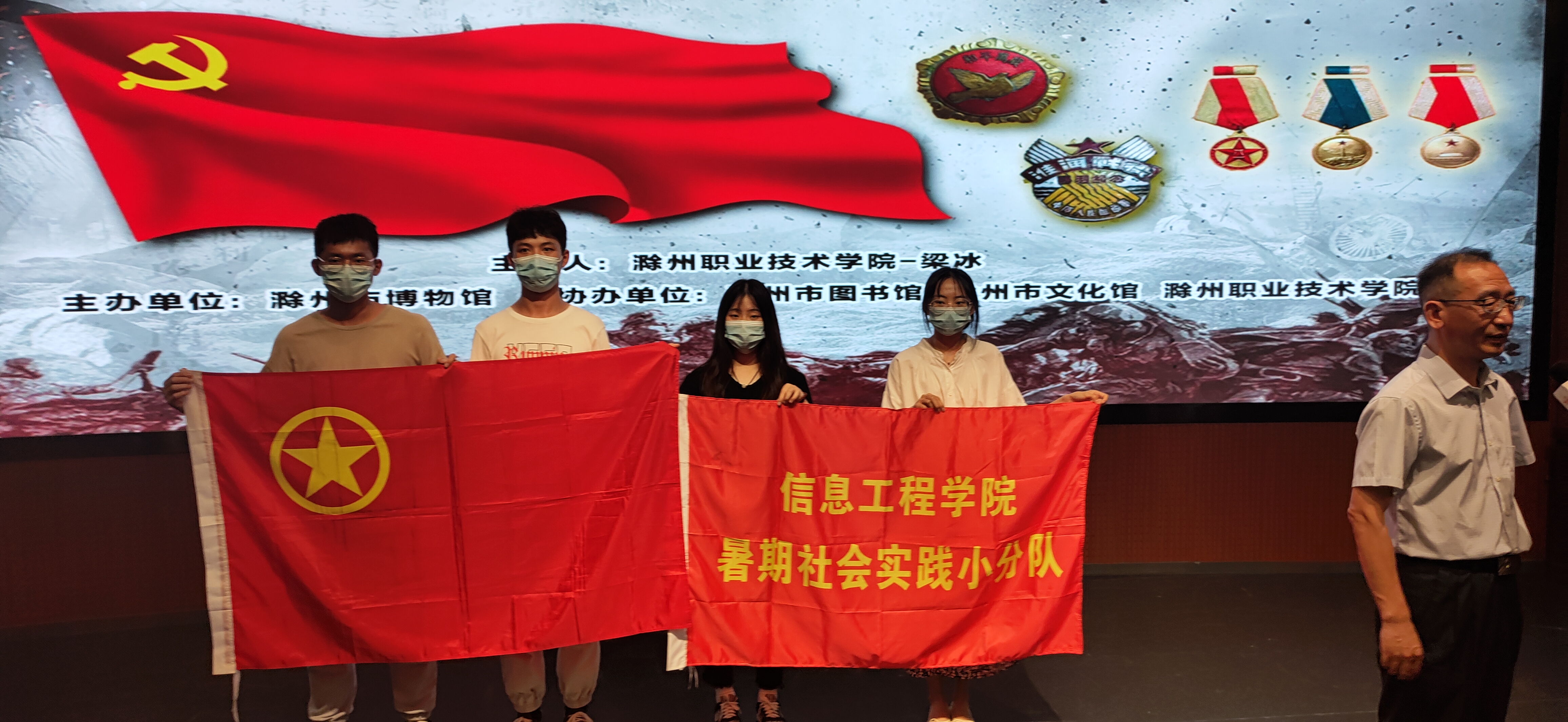为扎实开展党史学习教育,推动党史学习教育走深走实,7月1日,信息工程学院团总支组织4名同学组成暑期社会实践团队前往滁州博物馆参加了庆祝建党一百周年“透过徽章看党史”专题教育讲座活动。