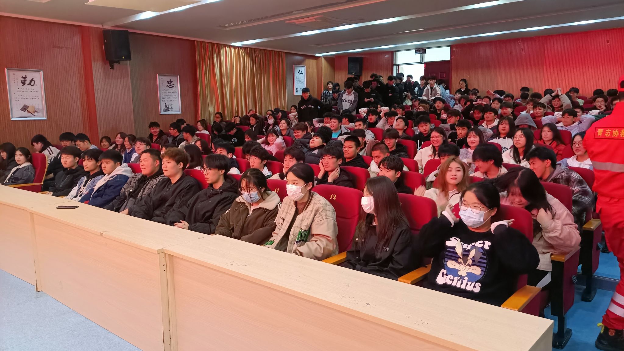 为弘扬雷锋精神,增强新葡的京官网学生应急救援能力,提升新葡的京官网学生的志愿服务技能。3月22日下午,信息工程学院团总支雷锋月系列活动之“弘扬雷锋志愿者精神,增强应急救援能力”应急知识专题讲座在南阶203顺利举行。本次活动由来安县青年志愿者协会会长吴亚君主讲,滁州市青年志愿者协会的志愿者、院党总支书记杨阳老师、院团总支书记朱睿老师及新葡的京官网近300名学生代表参与了讲座。