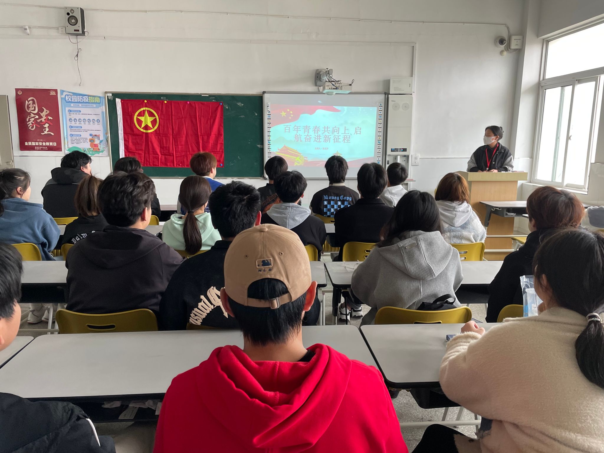 团课开始主讲人张玉梦通过PPT的形式带领同学们回顾了共青团的基本知识。随后,张玉梦从“要毫不动摇坚持和加强党的全面领导、要深入践行以人民为中心的发展思想、要深刻学习领会新时代党的创新理论、要坚持以新发展理念引领高质量发展”四个方面展开讲述,鼓励同学们在今后的学习生活中主动学习党的理论,学习党的二十大报告,不负党的栽培与希望。