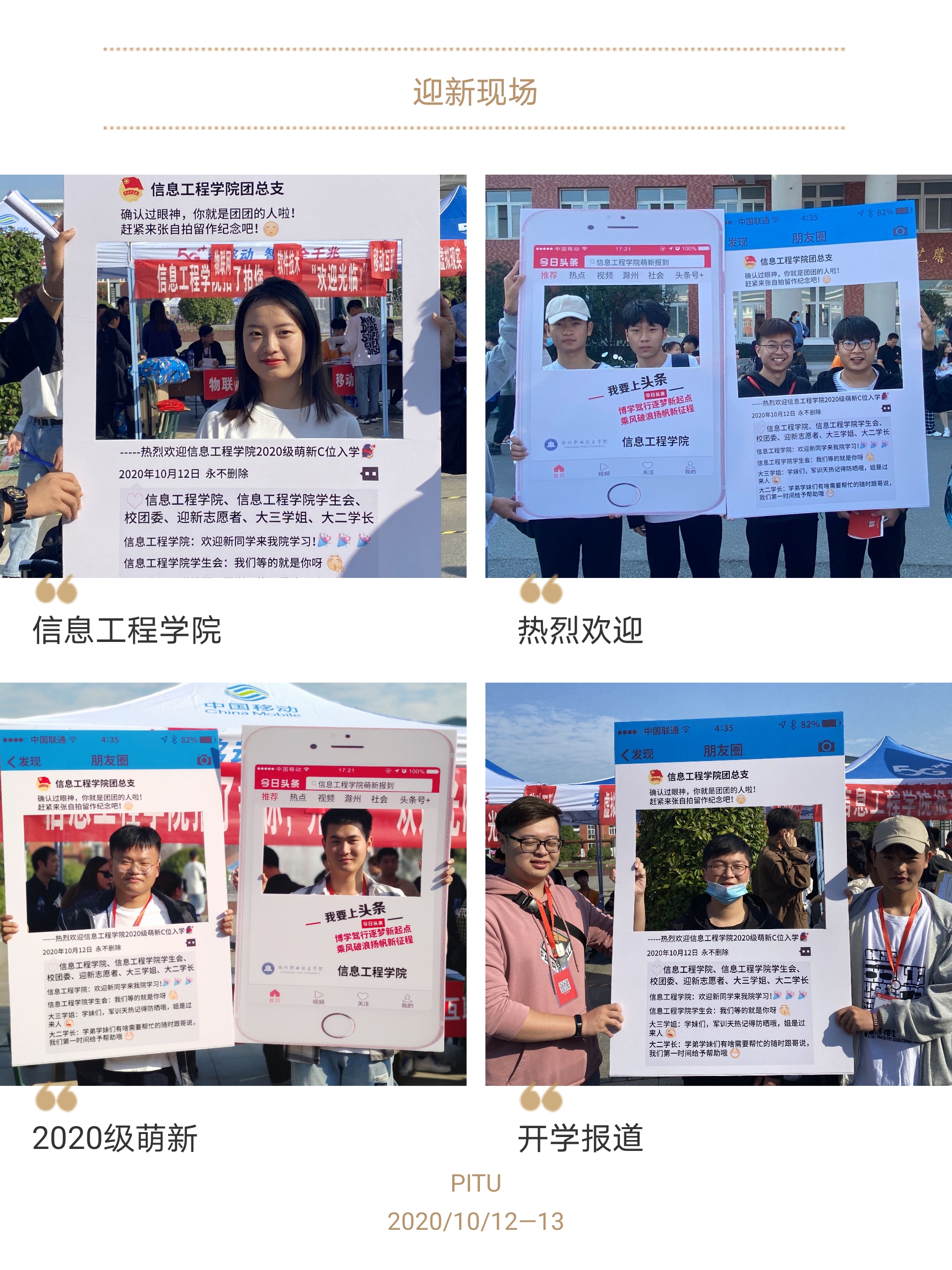 金秋送爽,丹桂飘香。10月12日,在这硕果累累的季节里,新葡的京集团35222vip2020级迎新工作正式拉开帷幕,信息工程学院400多名新生错峰进入校园,有序拉开各项开学季活动。学院迎新氛围浓厚,志愿者热情高涨,大家都严阵以待迎接来自四面八方的莘莘学子。