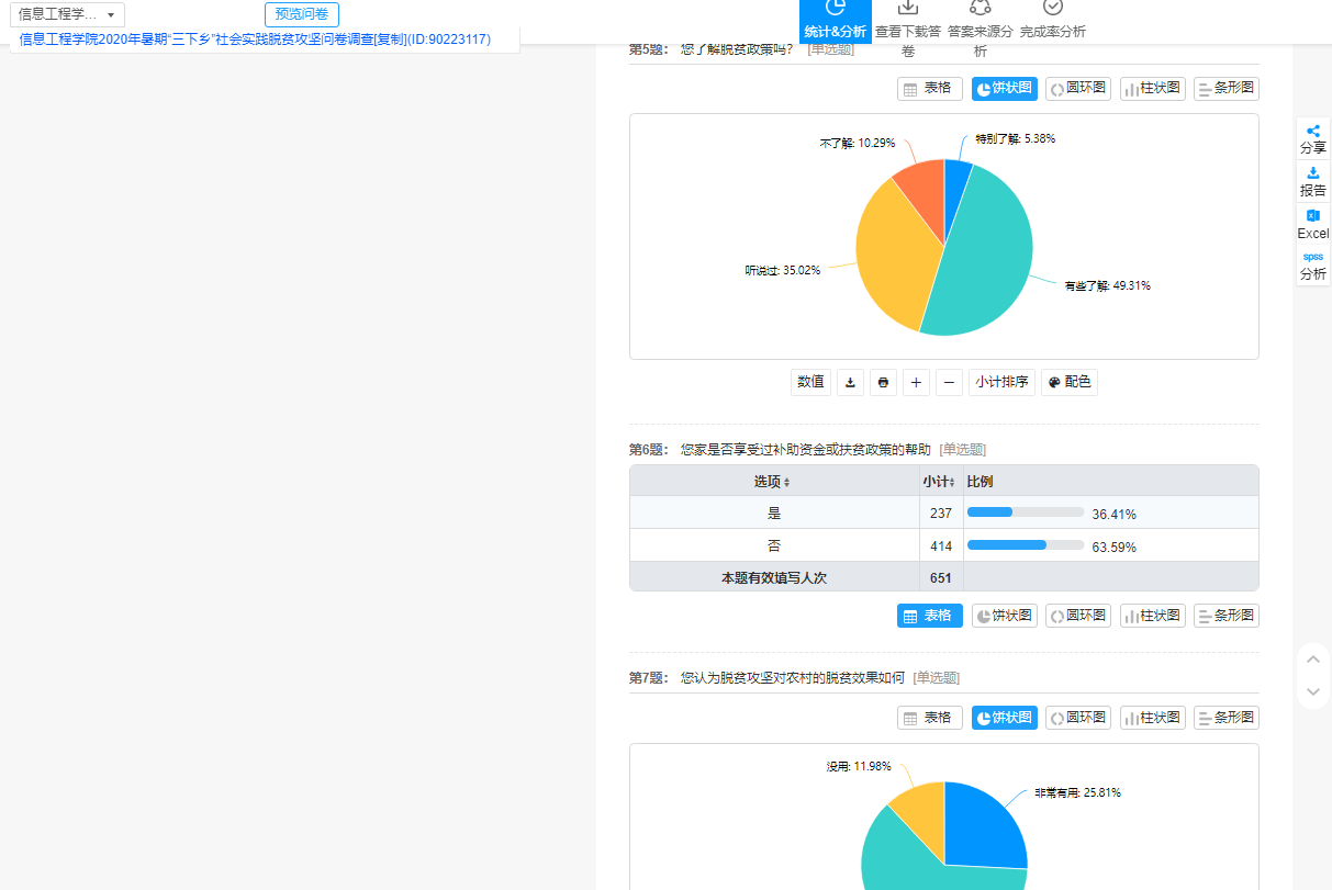 同时,为调查我国脱贫攻坚的情况,新葡的京官网设计了线上的问卷调查,内容围绕贫困原因、贫困政策、脱贫工作的问题、政府采取的脱贫措施等。同学们积极响应并转发,认真作答,最终共收集到问卷调查样本651份。通过调查结果了解到我国的脱贫工作已取得了显著效果,脱贫政策已基本普及,人民生活水平也得到明显改善。