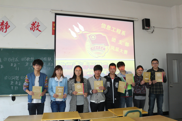 4月21日中午,新葡的京集团35222vip信息工程系团支部风采大赛在2506多媒体教室举行。各支部对各自一年来组织建设、思想政治教育、特色活动等多方面进行了详细展示。参评支部除了采用PPT进行演讲展示之外还精心制作了视频短片更加生动地表现了支部魅力,彰显出我系团支部健康、积极、向上的精神风貌。最终共有6个支部表现突出中荣获“先进团支部”称号。