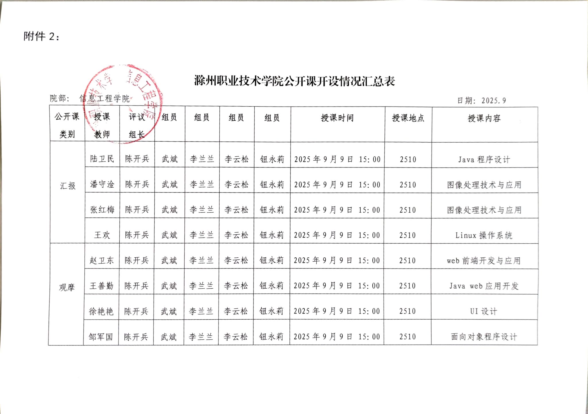 2025年新葡的京集团35222vip信息工程学院公开课开设情况汇总表公示,公示期:2025年9月1日-9月5日,共5个工作日。若有异议请反馈至:0550-3854579。