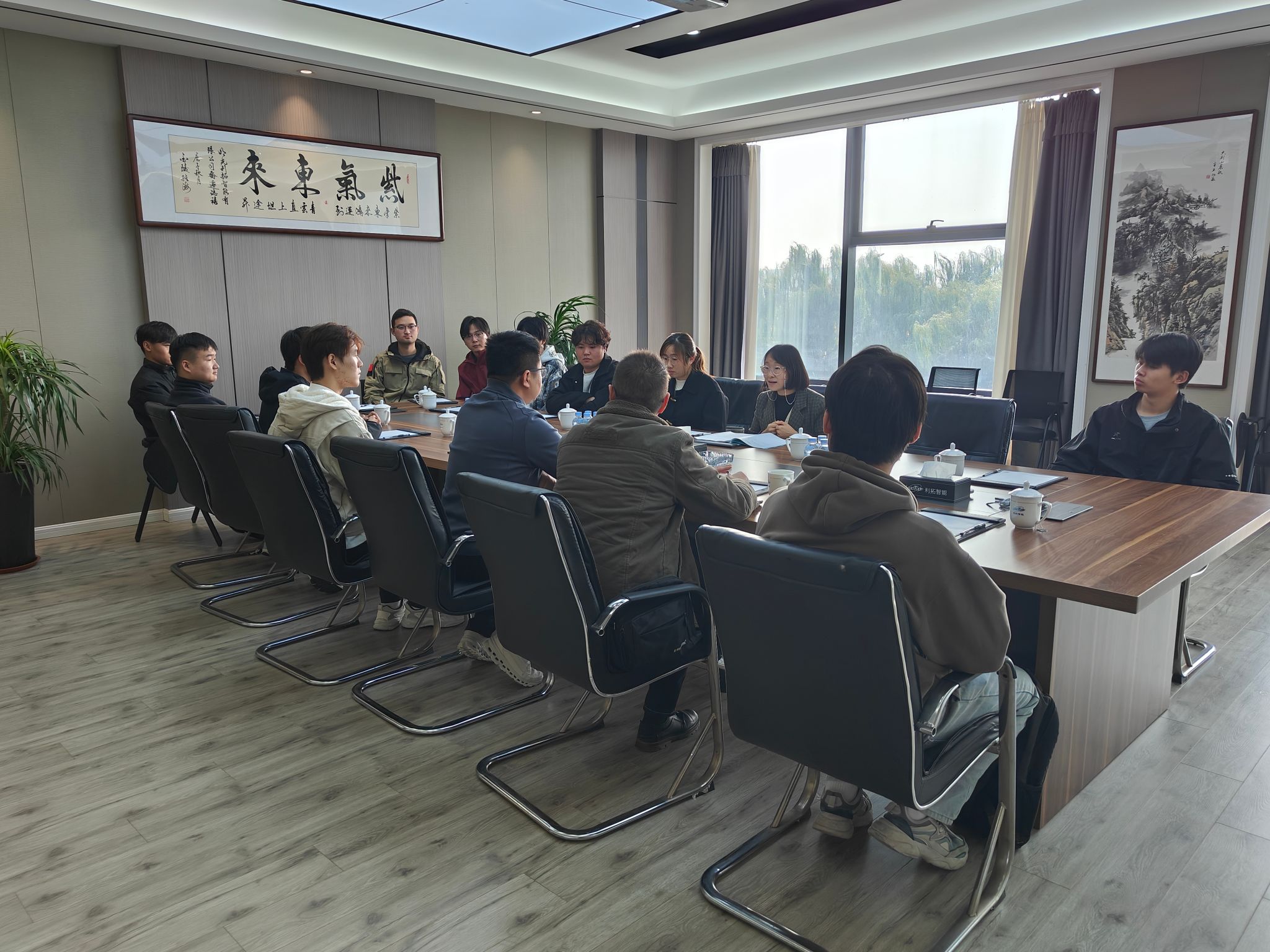 随后,在明光利拓智能科技有限公司会议室,俞教授和电子信息系教师就产教融合实习实训基地建设、科研平台合作等方面开展教研活动交流研讨,希望通过实训基地建设和科研平台合作,增强学生职业技能和实战经验,促进教师与企业技术人员的合作交流。