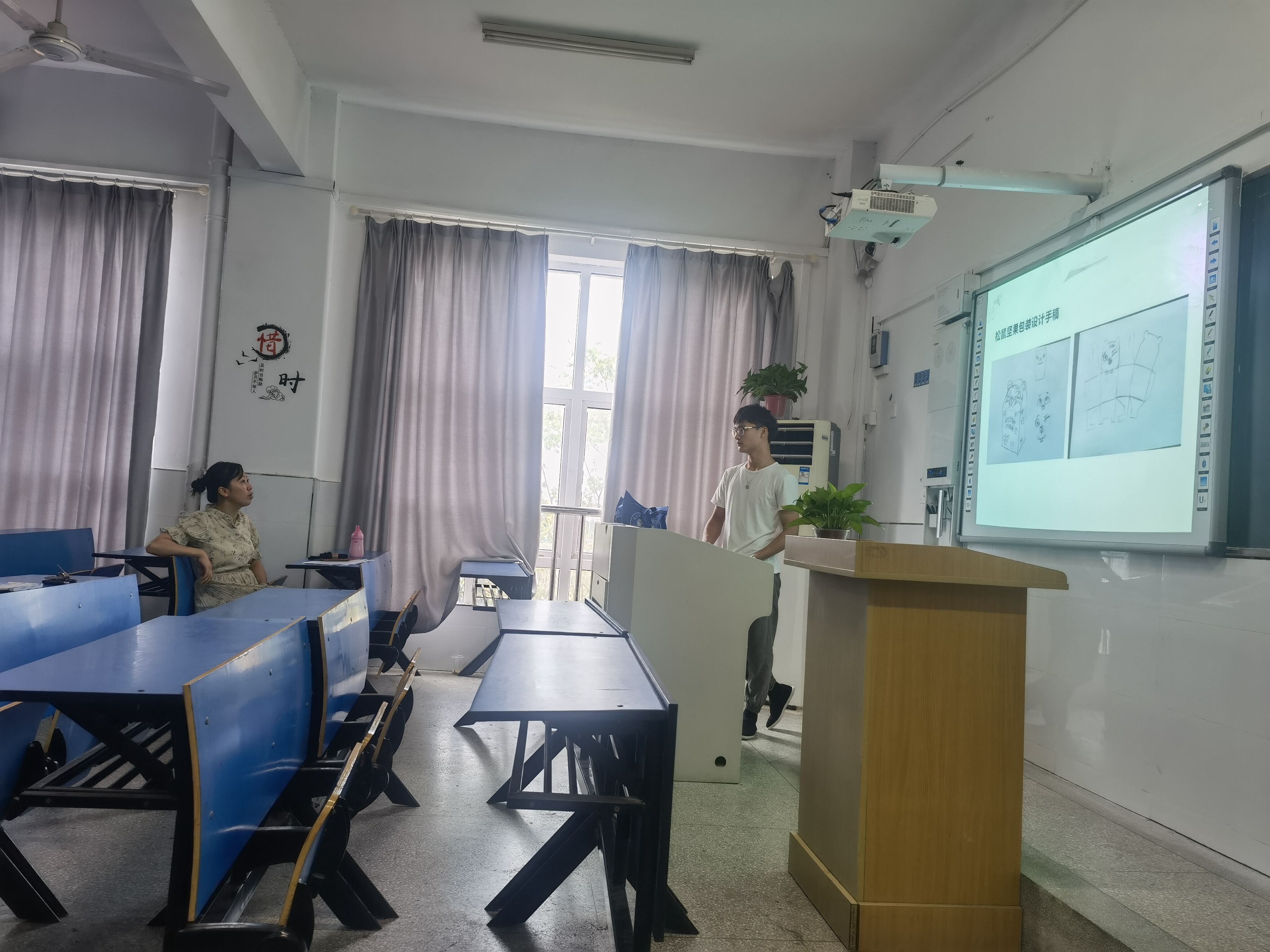 传媒与设计学院设计艺术系党支部全体党员6月15日上午第3节课在2213教室为工业设计专业学生指导作品,教师及学生多人参加了此次活动。活动由任课教师王起主持,学生依次讲解作品,党员教师进行点评。