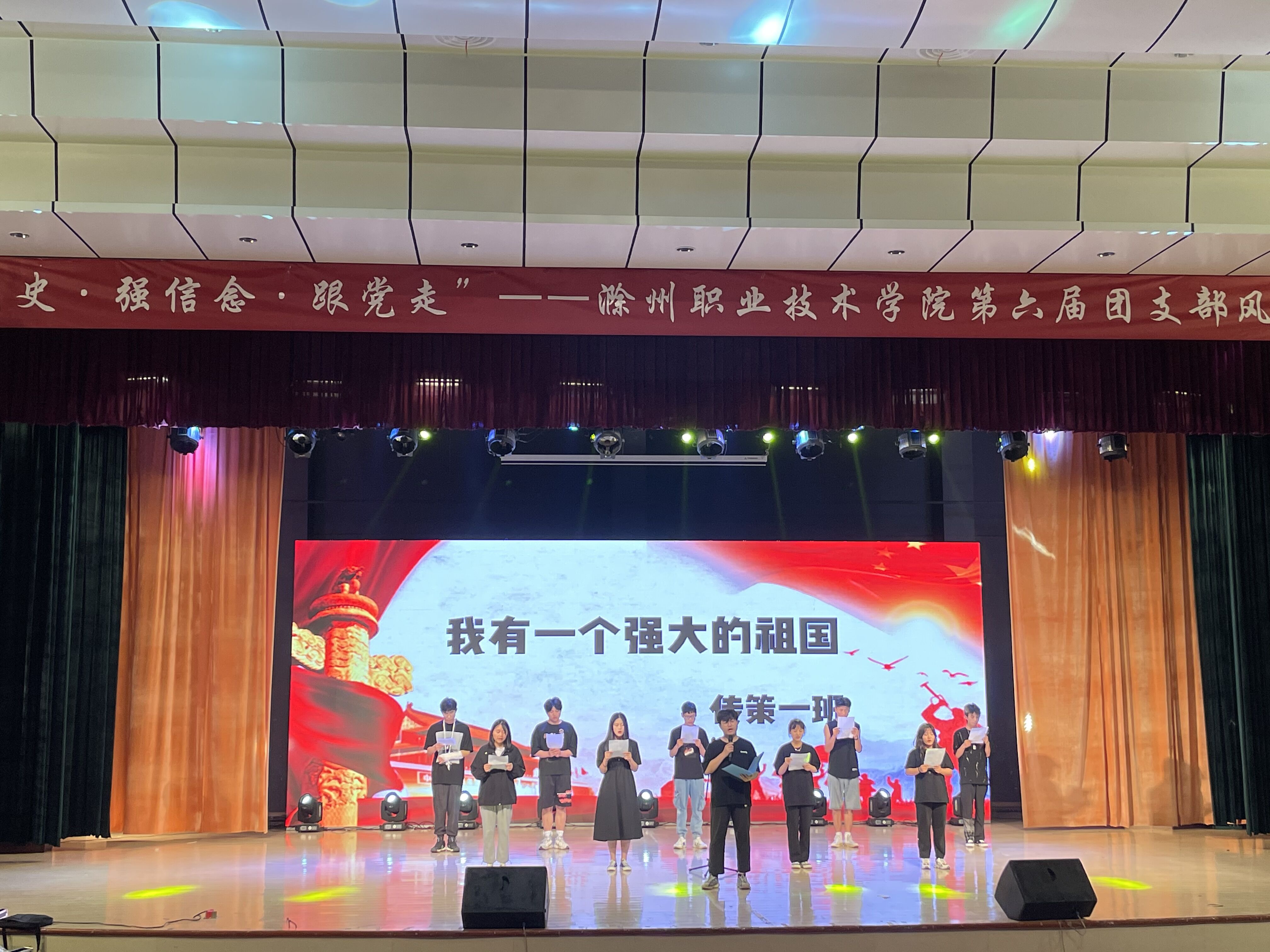 决赛分风采展示和才艺展示两个环节。在风采展示中,20级传播与策划1班团支部以PPT汇报的形式,从团支部简介、团支部生活、团支部未来规划三个方面全面展示了支部风采;20级服装与服饰设计2班团支部则用视频的形式,从团支部的人员状况、学习环境、特色活动等多方面,生动呈现了团支部的基本情况。在才艺展示中,20级传播与策划1班团支部、20级服装与服饰设计2班团支部分别带来了诗朗诵《我有一个强大的祖国》和《我的祖国》,支部成员们声情并茂,昂扬的情绪使现场观众深深被感染。