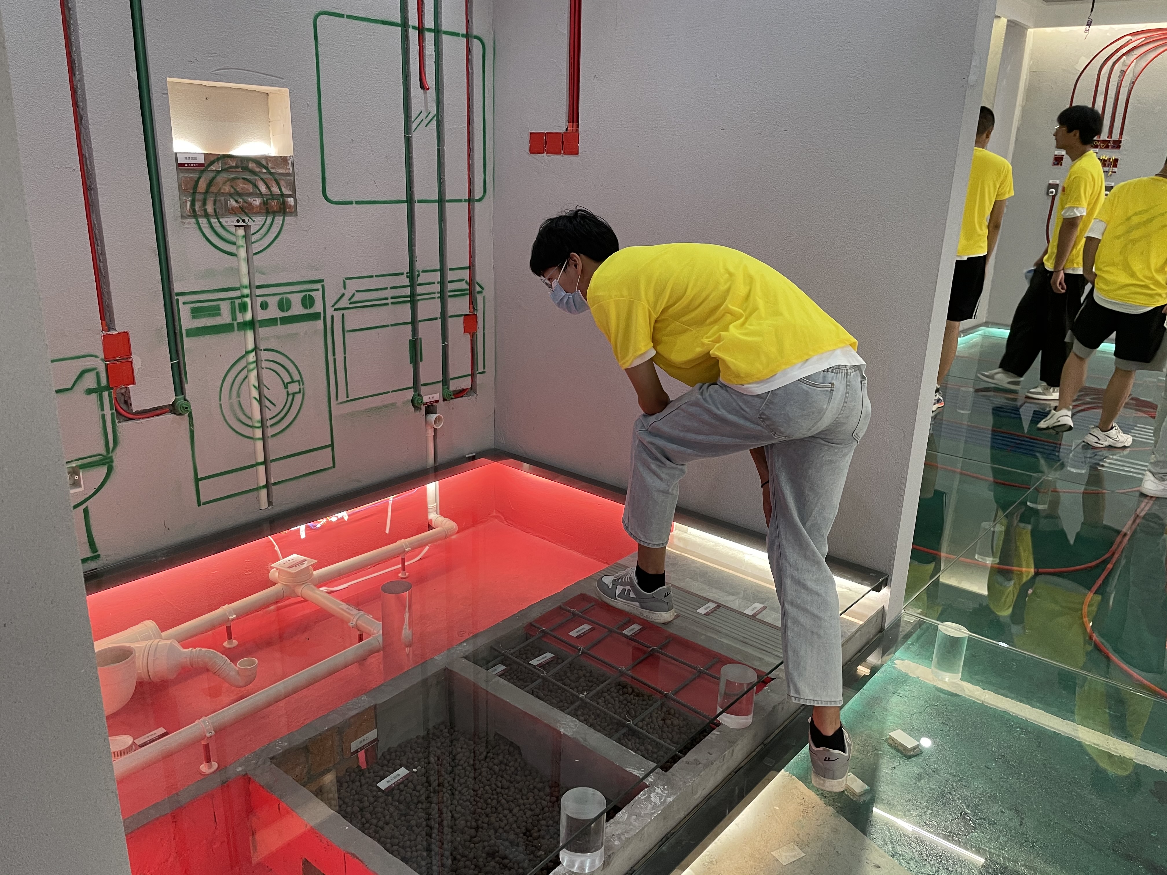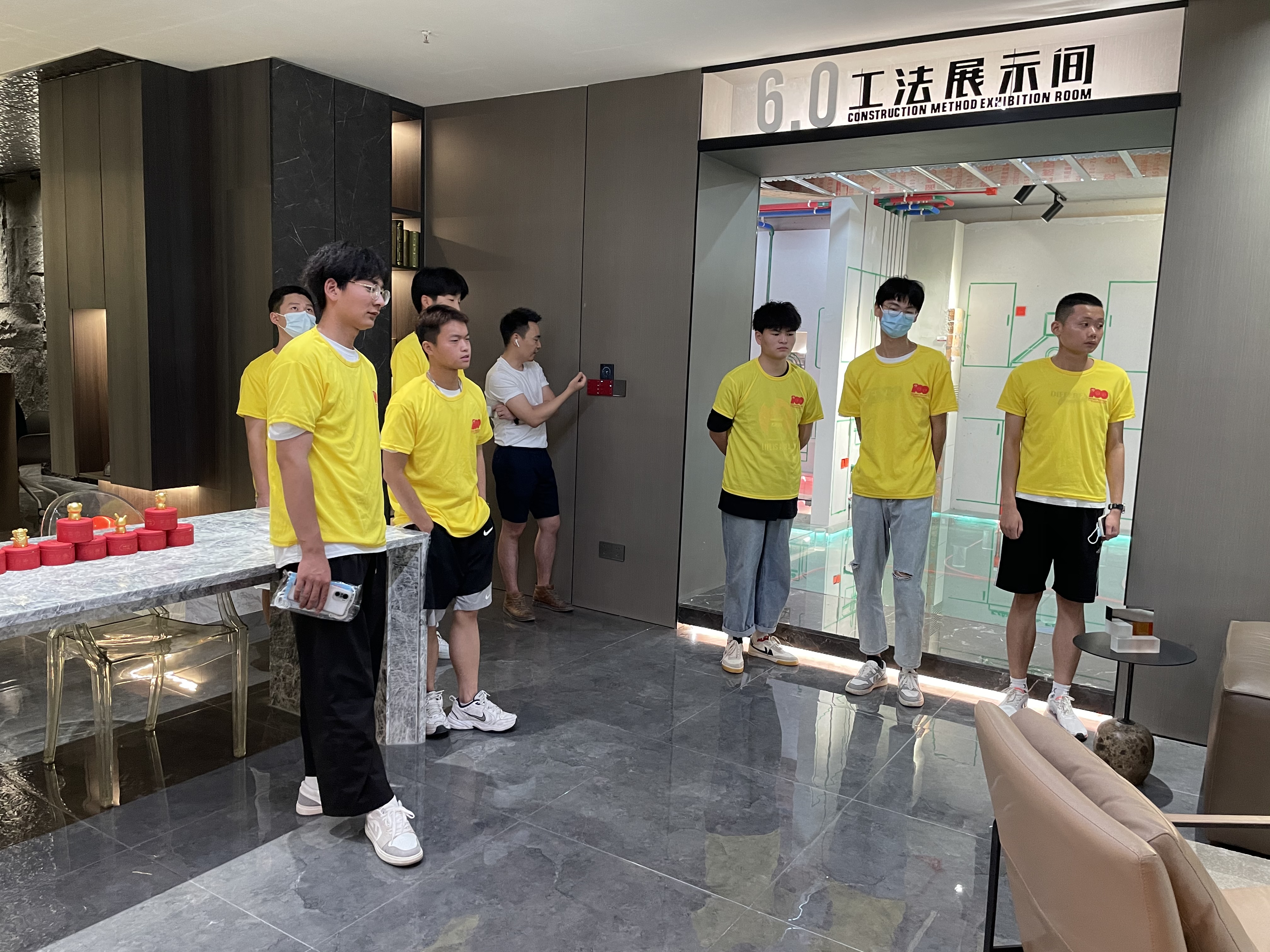 在天造地设装饰设计有限公司负责人周未的带领下,队员们先后来到工艺展示间、会客区、板材展示区、灯光演示区等多处样板间,深入了解了装修实践里的设计技巧。周未细致的讲解中让队员们认识到所谓“设计”,并非仅有思维技巧就行,还需贯彻落实到每一步。在会议室里,周未分享了自己在实践案例中的设计经验与技巧,并与队员们互动交流,勉励大家勤学善思、一步一个脚印实现自己的“设计梦”。