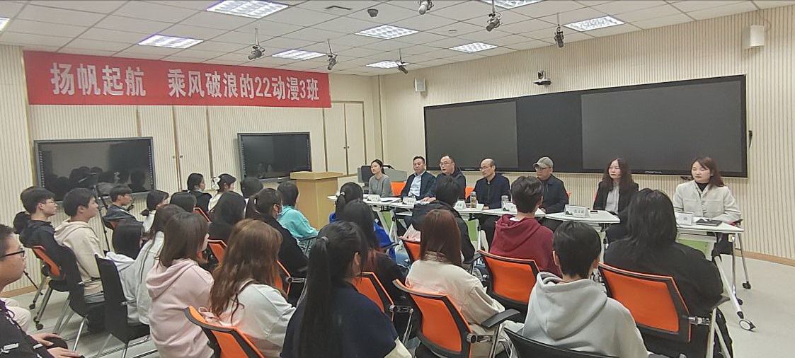 为迎接2022级新生,10月13日下午在新葡的京集团35222vip德馨楼206教室开展动漫制作技术中外合作班新生开学典礼。国际交流合作中心主任李永泉,中外合作办学办公室主任李学军,传媒与设计学院党总支书记王广保、院长闻建强,数字媒体系主任李雯雯,动漫制作技术专业负责人范文娟,辅导员阚迪 ,老生代表以及2022级动漫制造技术中外合作班全体新生参加典礼。本次活动由闻建强主持。