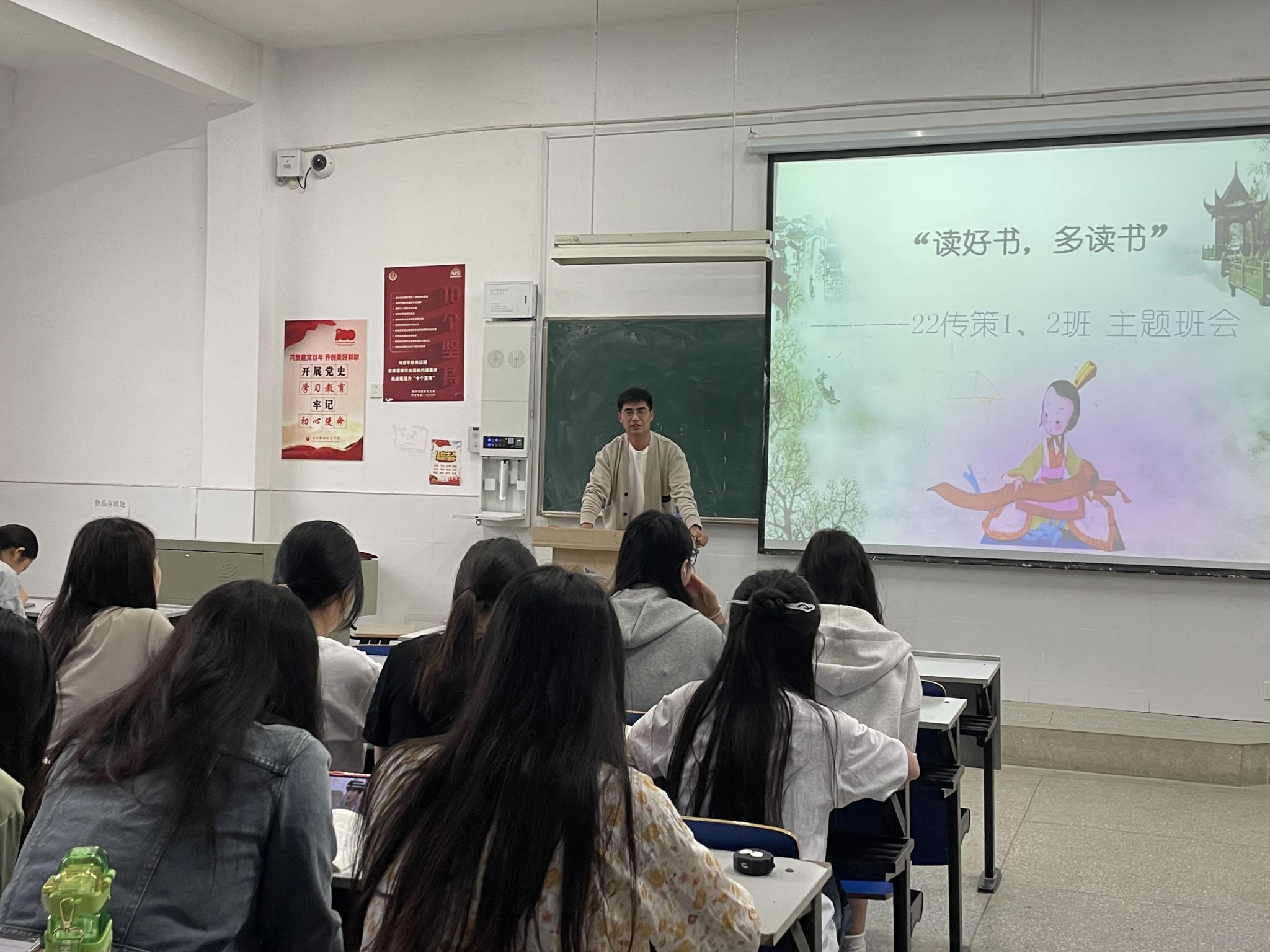 活动以主题班会的形式开展,班级辅导员围绕“读好书、多读书”,从读书的好处、读书的方法等角度,号召学生养成多读书、读好书的习惯,让好书增长知识、开阔视野、丰富生活、陶冶情操、净化心灵。