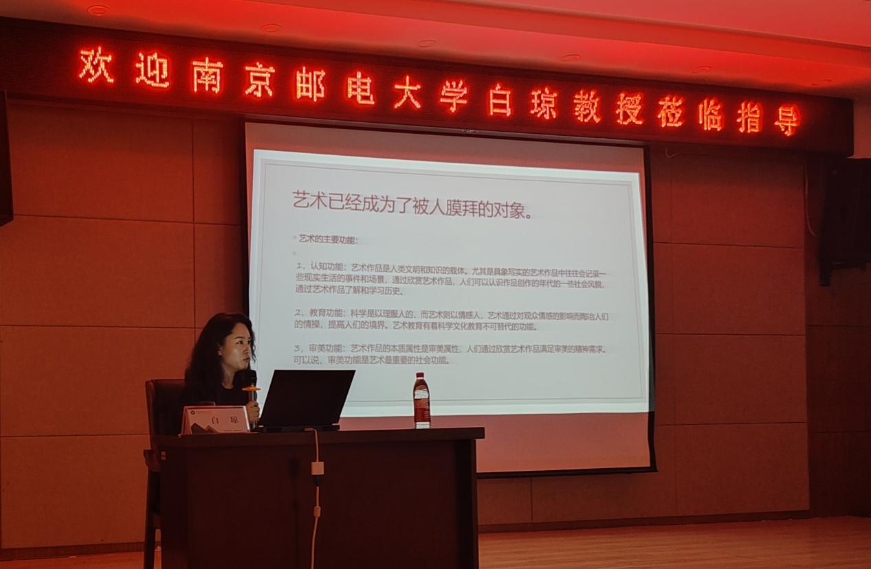 为进一步提升传媒与设计学院师生的艺术审美,拓展师生的了解艺术与挖掘艺术的能力,促进教师专业化成长,6月7日下午,传媒与设计学院在南阶205报告厅举办“大师进校园·名师进课堂”专题讲座活动。本次活动特别邀请了南京邮电大学传媒与艺术学院白琼教授,活动由传媒与设计学院院长闻建强主持,传媒与设计学院专业教师及150位学生参与活动。