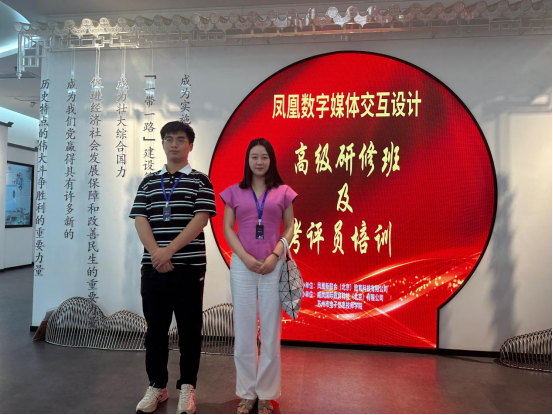 为全面落实数字媒体交互设计职业技能等级证书试点工作,推动证书教学、培训工作顺利开展,全面提升新葡的京官网教师教学、培训和评价能力。传媒与设计学院数字媒体系青年教师薛梦琪、吴涛参加了凤凰教育于2023年7月23日至28日,在苏州开展的1+X数字媒体交互设计职业技能等级证书高级研修班及考评员培训。
