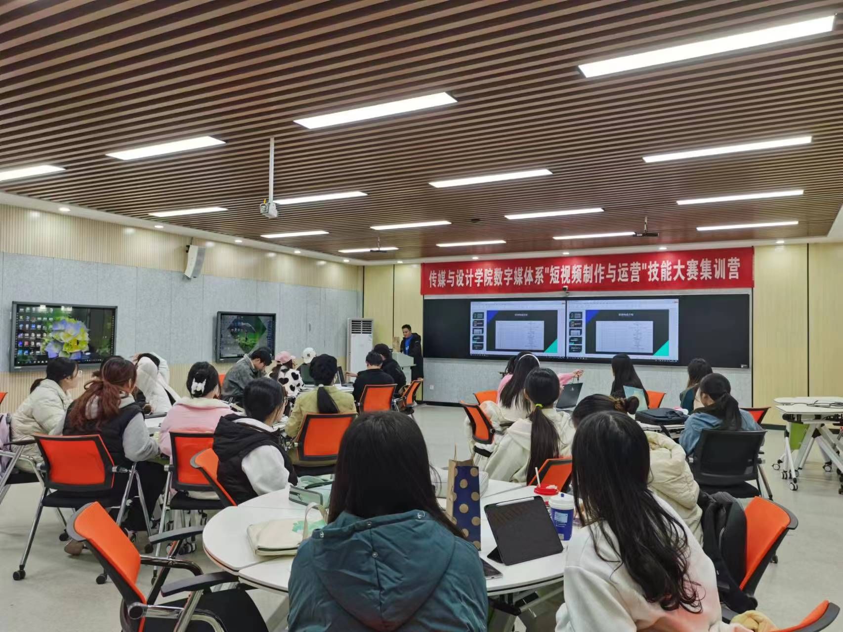 11月16日至17日,传媒与设计学院数字媒体系于实训楼201多媒体教室开展“短视频制作与运营”技能大赛集训,特邀完美动力动画教育资深教师授课,2022级30余名传播与策划专业的学生参与集训。