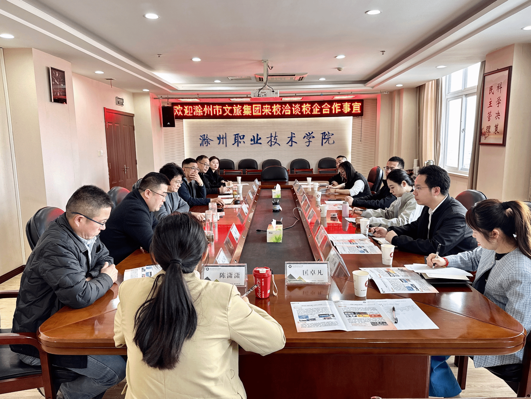 苏有良对滁州市文旅集团一行的到访表示诚挚欢迎,详细介绍了学校的发展情况,并期待双方在人才培养、协同创新、项目开发等方面展开深入合作,为推动滁州市经济发展做出贡献。