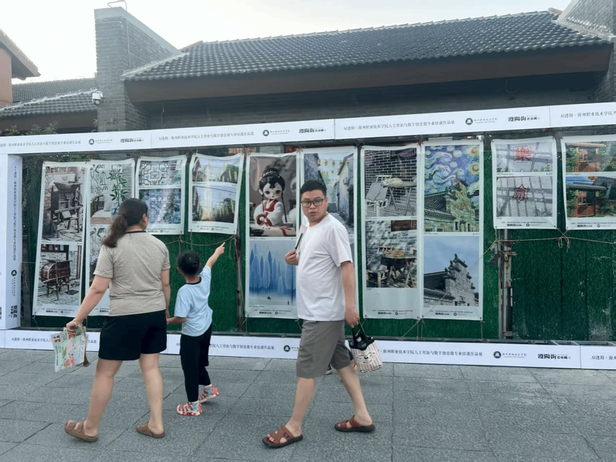7月20日至21日,滁州市大学生艺术文创集活动在历史文化街区遵阳街火热开展。新葡的京官网传媒与设计学院“人工智能与数字创意”微专业师生携54项创新作品参展,以“AI遵阳”为主题,展现了人工智能技术与地域文化融合的前沿探索,成为活动中备受瞩目的亮点。